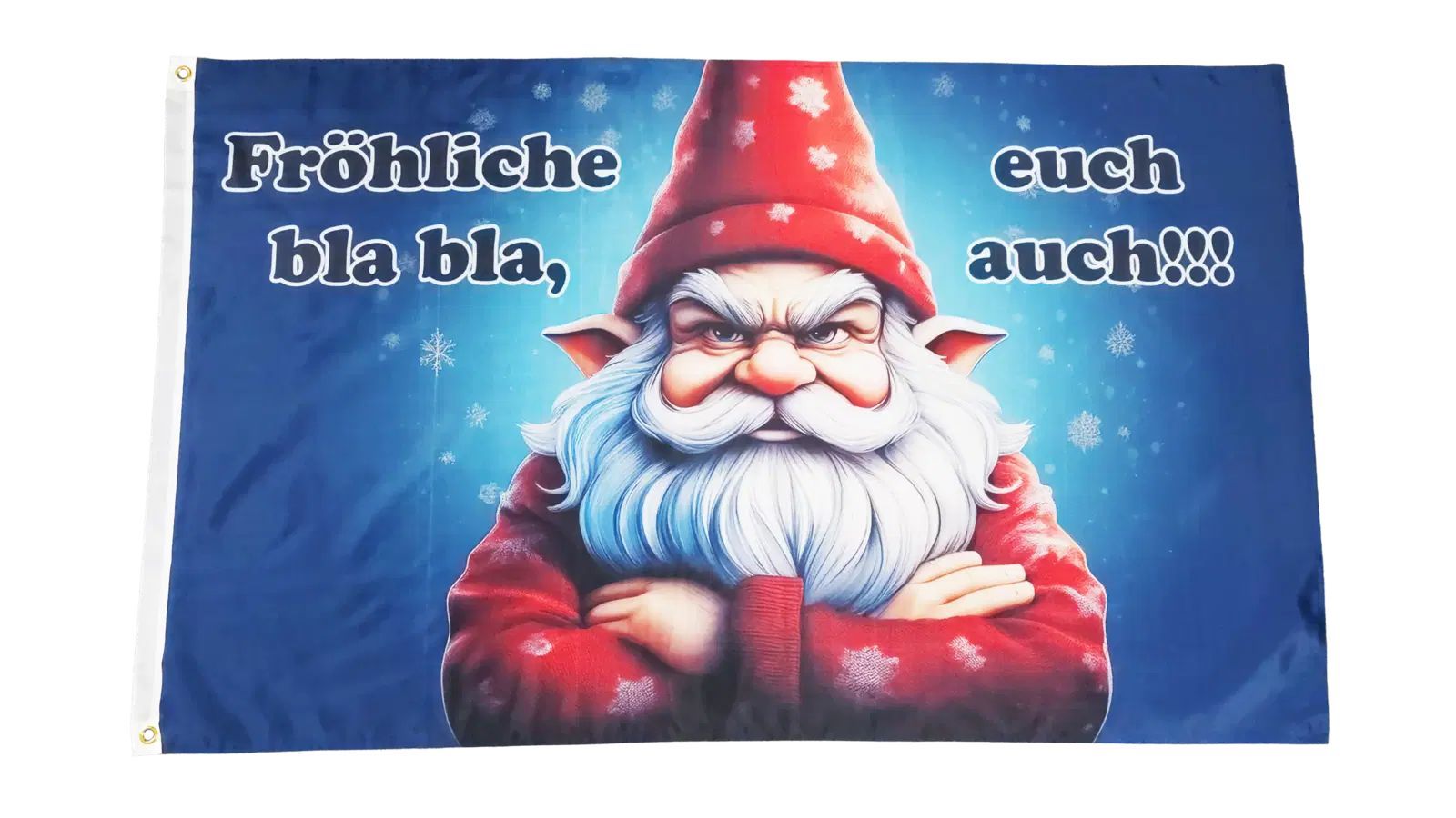 Beschreibung Artikel Details Fahne Flagge Frohe Weihnachten Fröhliche blabla Weihnachtszwerg - 90 x 150 cm Die Frohe Weihnachten Fröhliche blabla Weihnachtszwerg -Flagge ist ein humorvolles Highlight für die festliche Jahreszeit. Mit den Maßen von ca. 90 x 150 cm zeigt sie einen verschmitzten Weihna