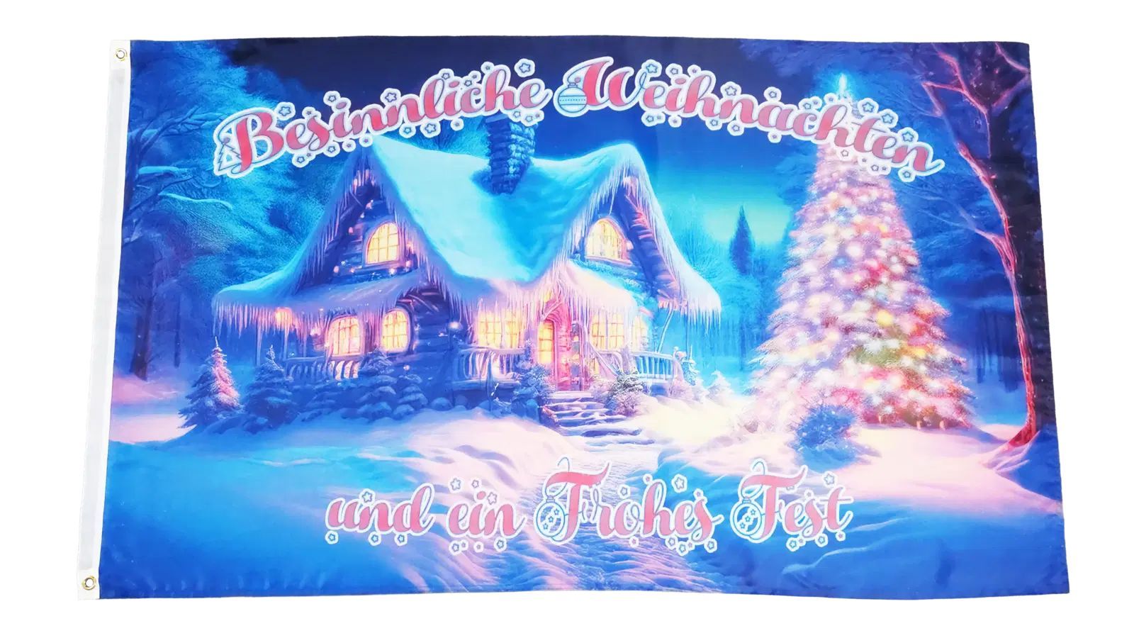 Fahne Flagge Frohe Weihnachten Haus Schnee Tannenbaum - 90 x 150 cm