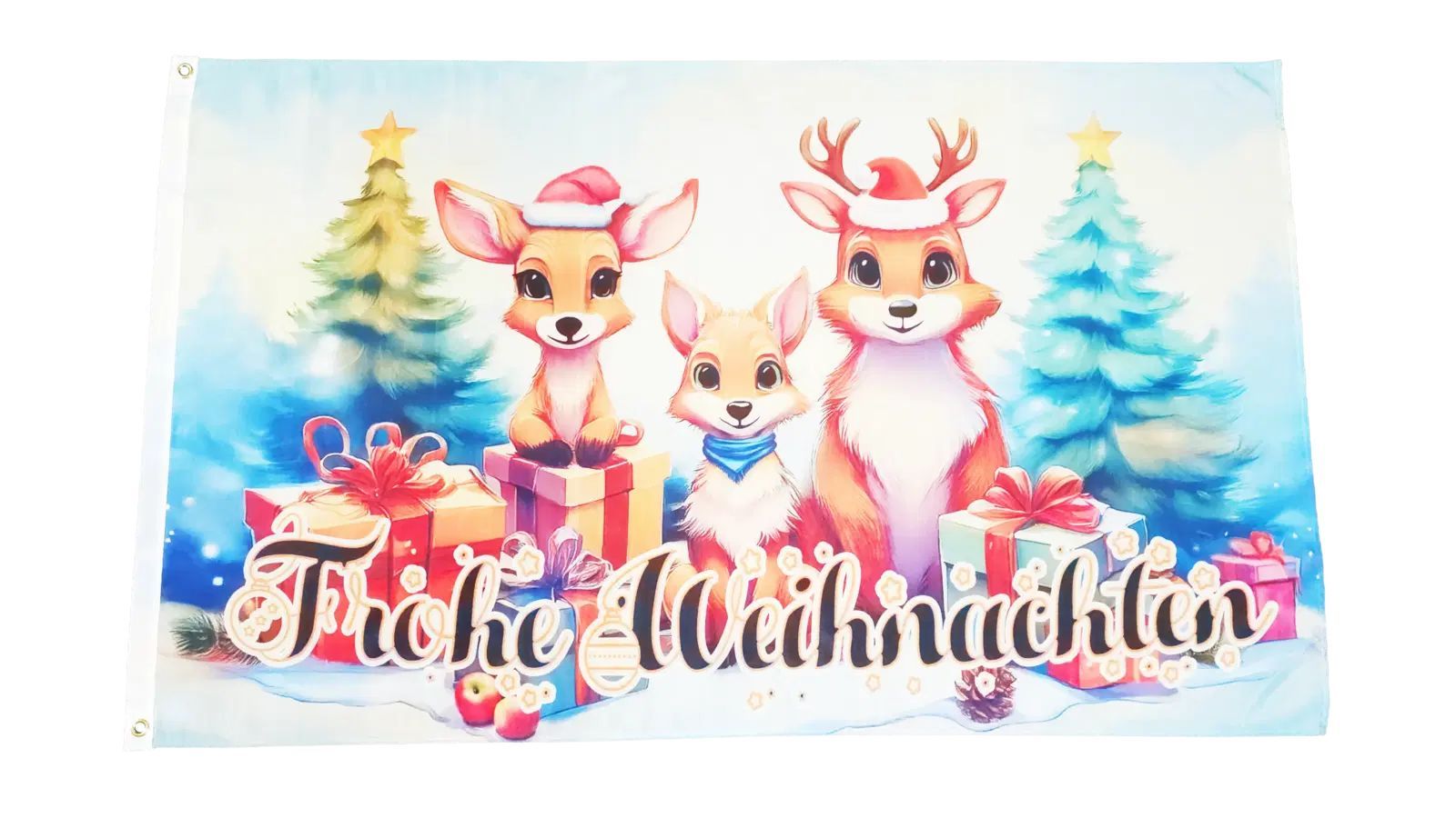 Fahne Flagge Frohe Weihnachten Rentier Familie - 90 x 150 cm