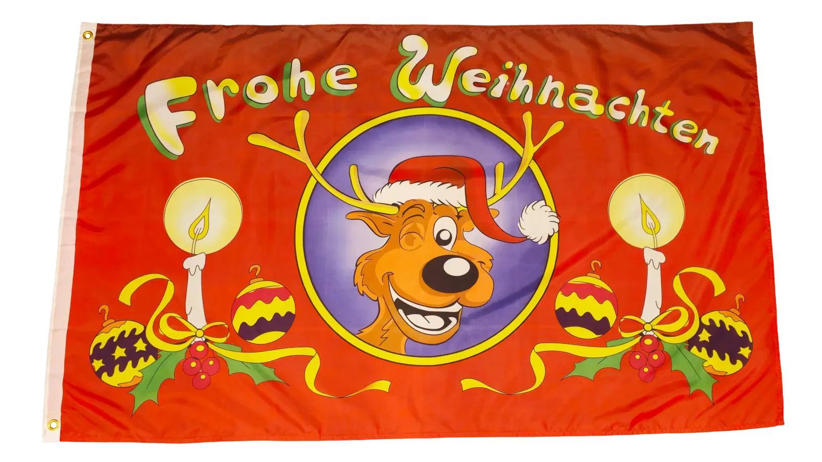 Fahne Flagge Frohe Weihnachten Rentier Kopf - 90 x 150 cm