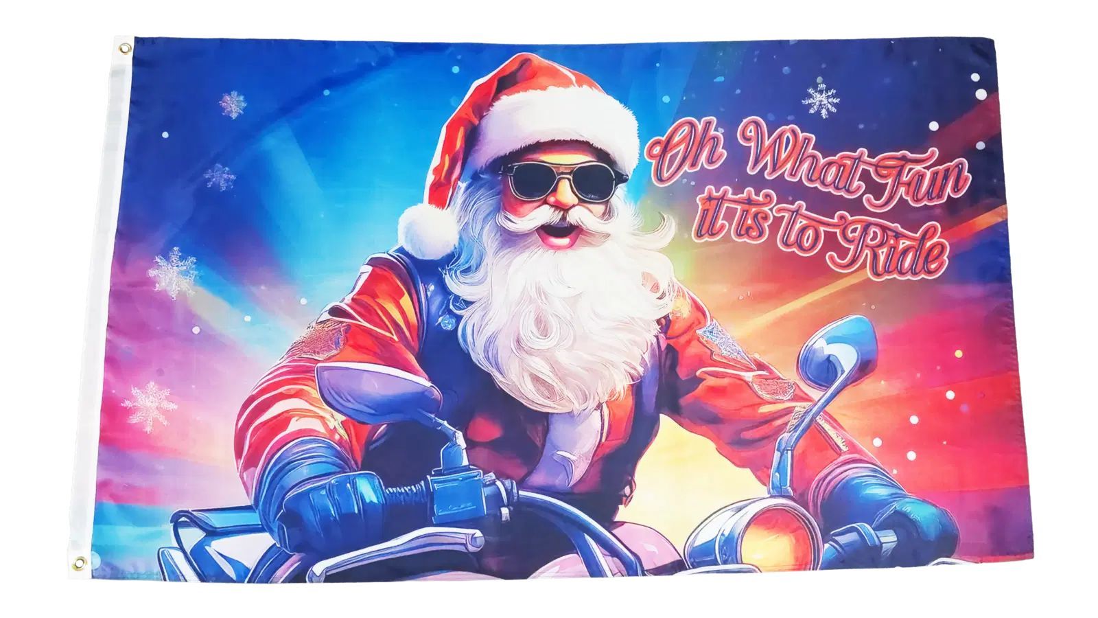 Fahne Flagge Frohe Weihnachten Weihnachtsmann auf Motorrad - 90 x 150 cm