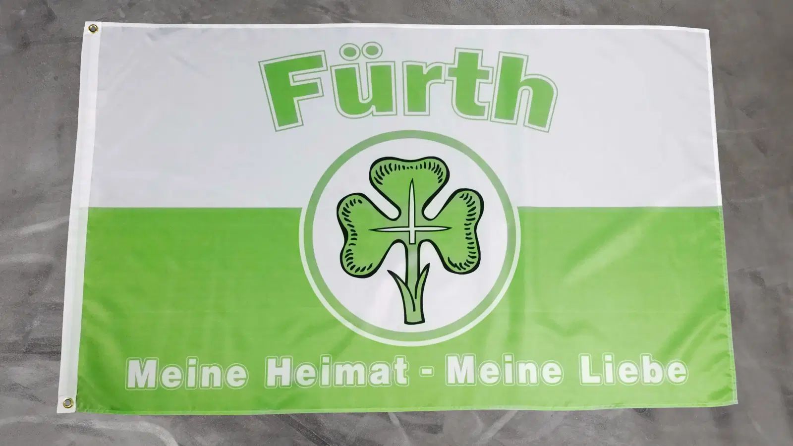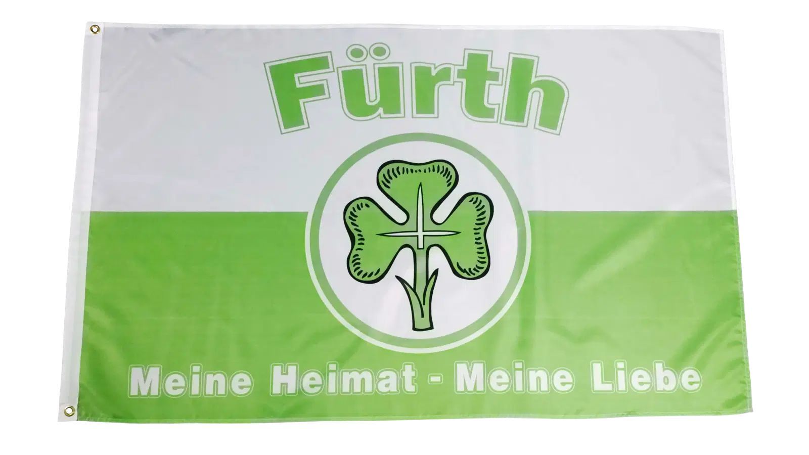Beschreibung Artikel Details Fahne Flagge Fürth - Meine Heimat meine Liebe - 90 x 150 cm Die Flagge Fürth - Meine Heimat meine Liebe präsentiert sich in einem harmonischen Zusammenspiel aus Weiß und Grün. Zentral prangt ein stilisiertes Kleeblatt, das Symbol der Stadt Fürth, umrahmt von den Worten M