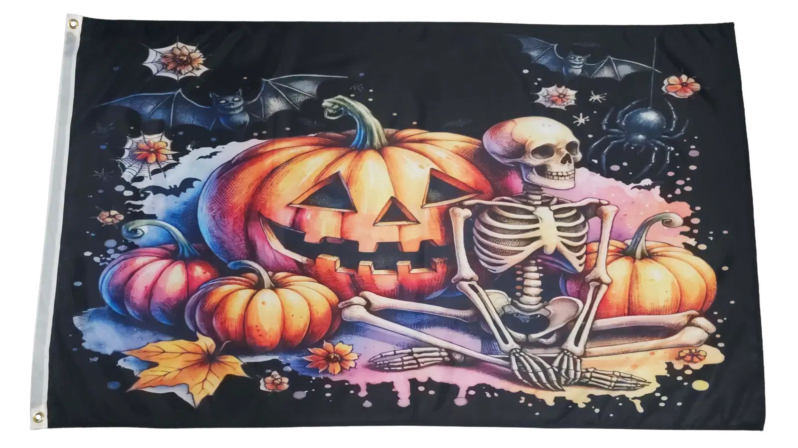 Fahne Flagge Halloween Kürbis Skelett Fledermaus Spinne - 90 x 150 cm