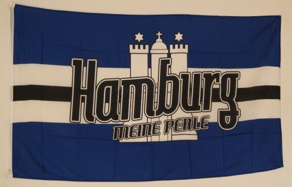 Flagge Fahne 90 x 150cm Hamburg meine Perle - hochwertiges reißfestes Polyester - Siebdruck mit hoher Farbbrillanz, Licht -, Wasser- und Sonnenecht - Mastseite mit zusätzlichen Verstärkungsband und 2 Metallösen zum Hissen - doppelt umsäumter Fahnenrand - Wind und Wetterfest, bei 30 Grad waschbar