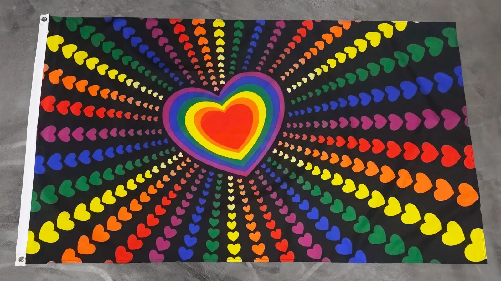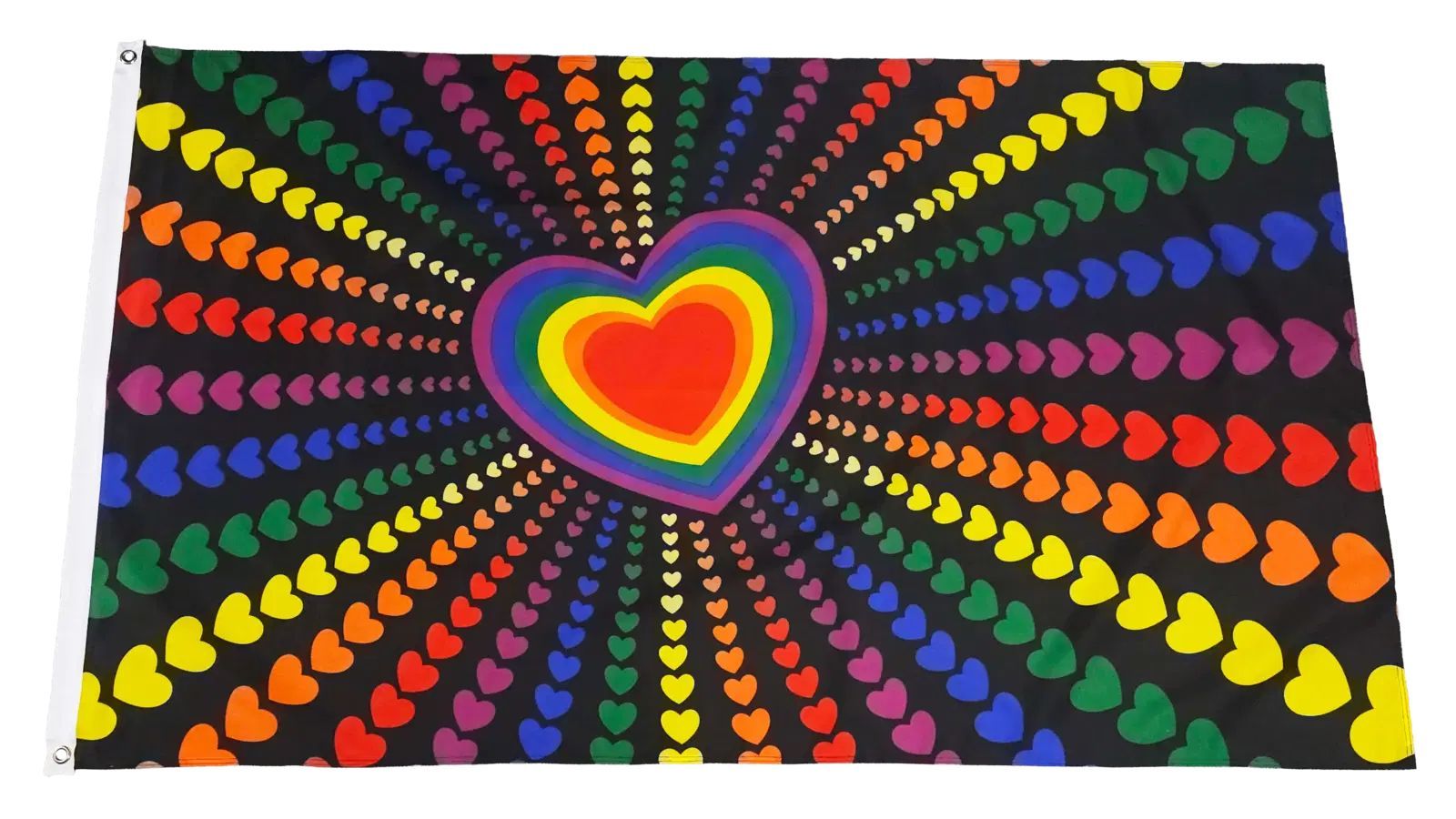 Fahne Flagge Herz Regenbogen Psychedelisch LGBTQ - 90 x 150 cm