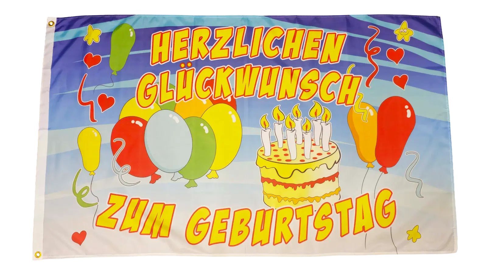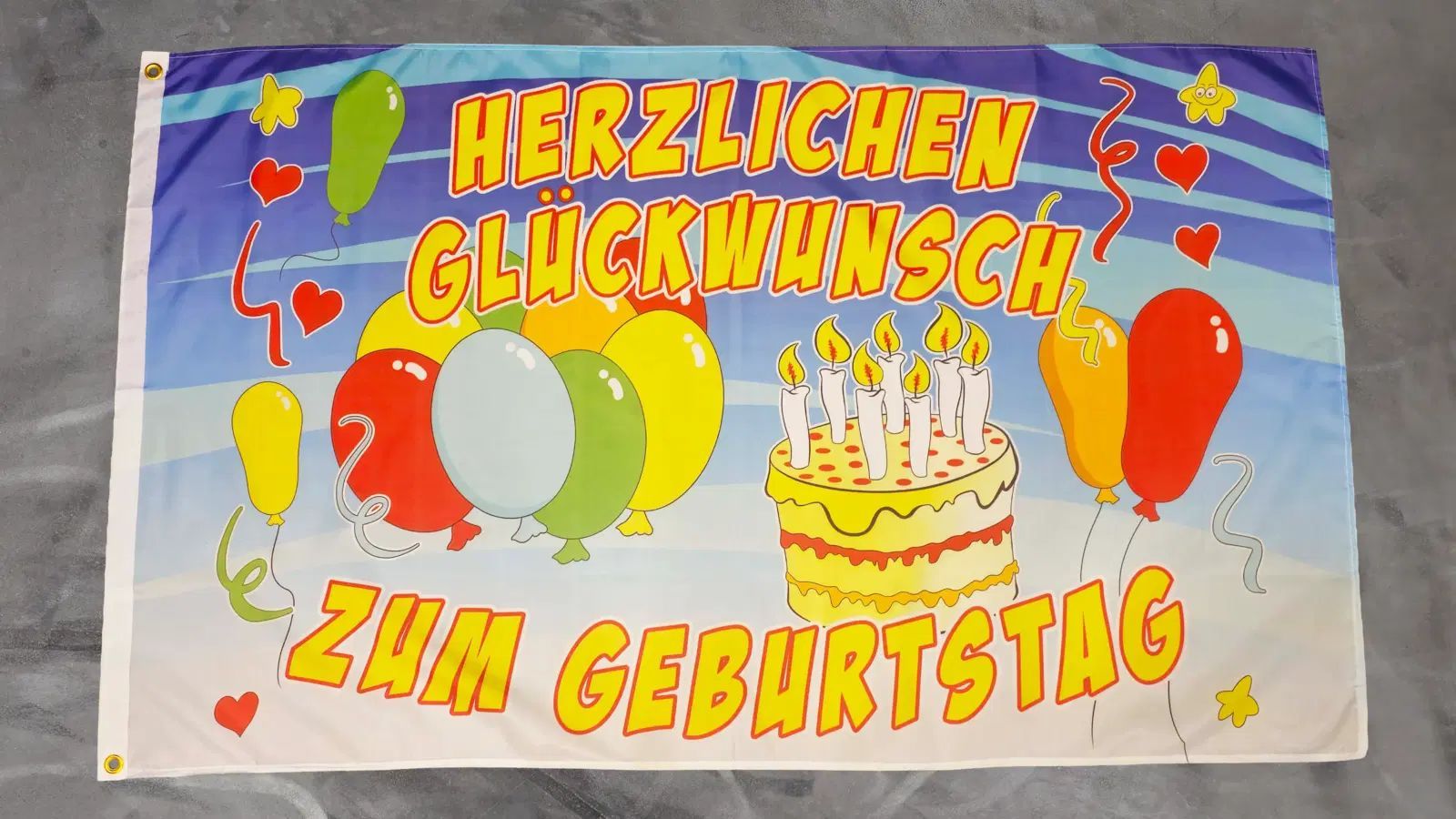 Fahne Flagge Herzlichen Glückwunsch zum Geburtstag Torte - 90 x 150 cm