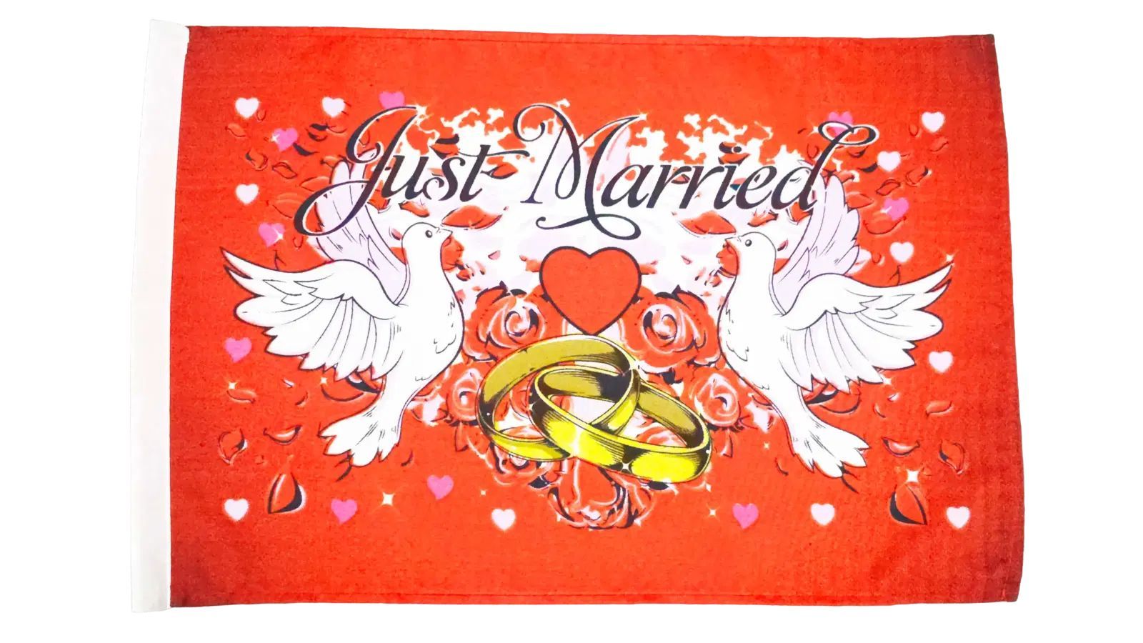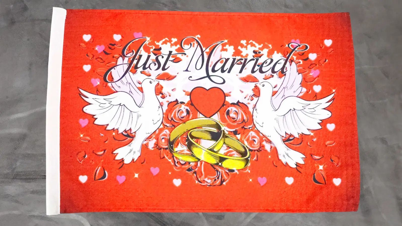 Fahne Flagge Just Married - Hochzeit - Stockfahne - 30 x 40 cm