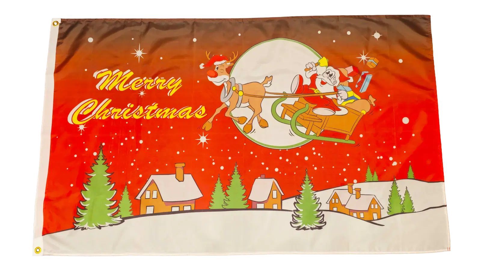 Beschreibung Artikel Details Fahne Flagge Merry Christmas Weihnachten Rentier - 90 x 150 cm Unsere Merry Christmas Weihnachten Rentier Fahne im Format 90 x 150 cm ist ein zauberhaftes Symbol für die festliche Weihnachtszeit. Der rote Nachthimmel mit einem großen Mond schafft eine magische Kulisse, w