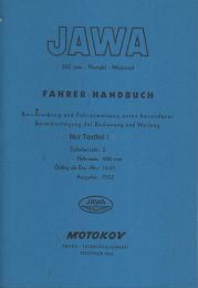 Fahrer Handbuch Jawa 500 ccm - Viertakt - Motorrad 2-Zylinder, 488 ccm Gültig ab Erz.-Nr.: 15-01 Beschreibung und Fahranweisung unter besonderer Berücksichtigung der Bedienung und Wartung incl. Technischer Daten und Schmirplan Leider nur der Textteil , Bildteil fehlt !! Ausgabe 1952 in Deutsch ca 32