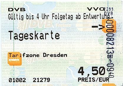 Fahrkarte DVB VVO, 01002 21279 Tageskarte Dresden vom 05.10. 2005