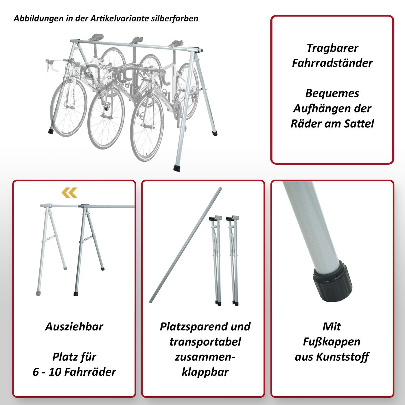 Mendler Fahrrad-Sattelständer HWC-K39, Metall pulverbeschichtet 114x170x114cm ausziehbar