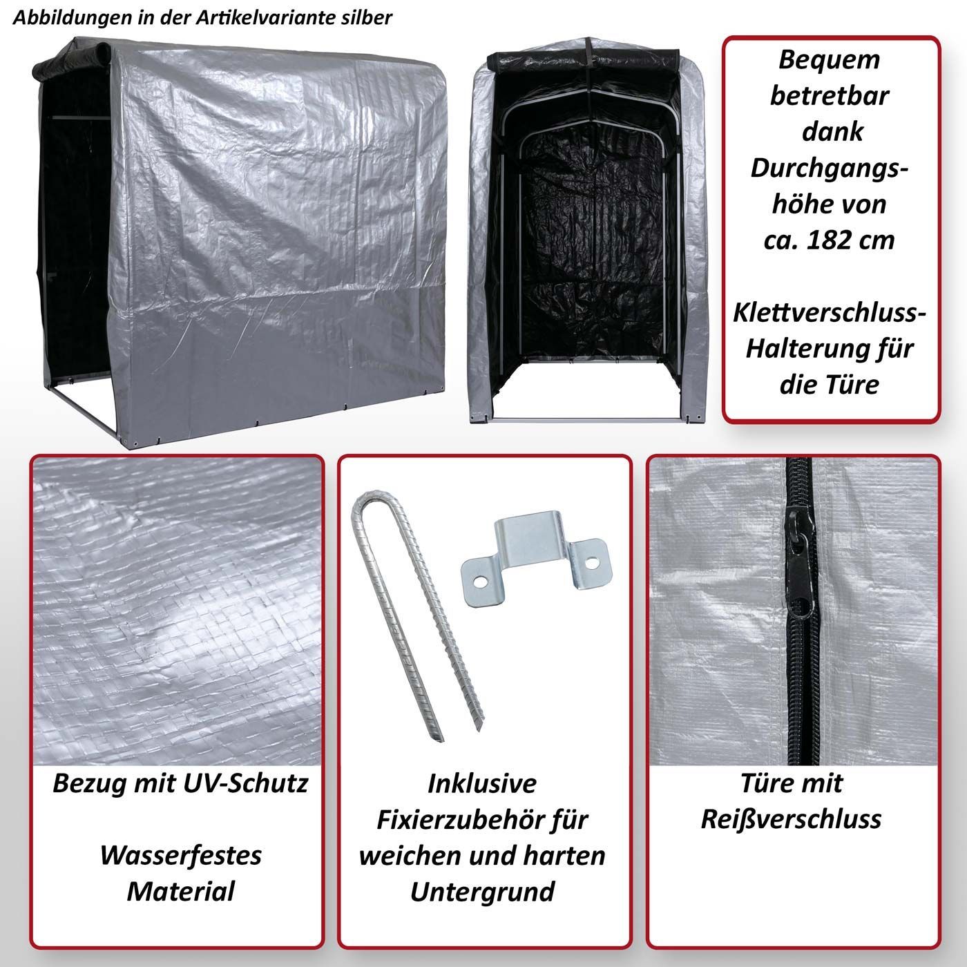 Mendler Fahrradgarage HWC-N61, Foliengarage, Alu UV-Schutz wasserfest, 201x121x201cm
