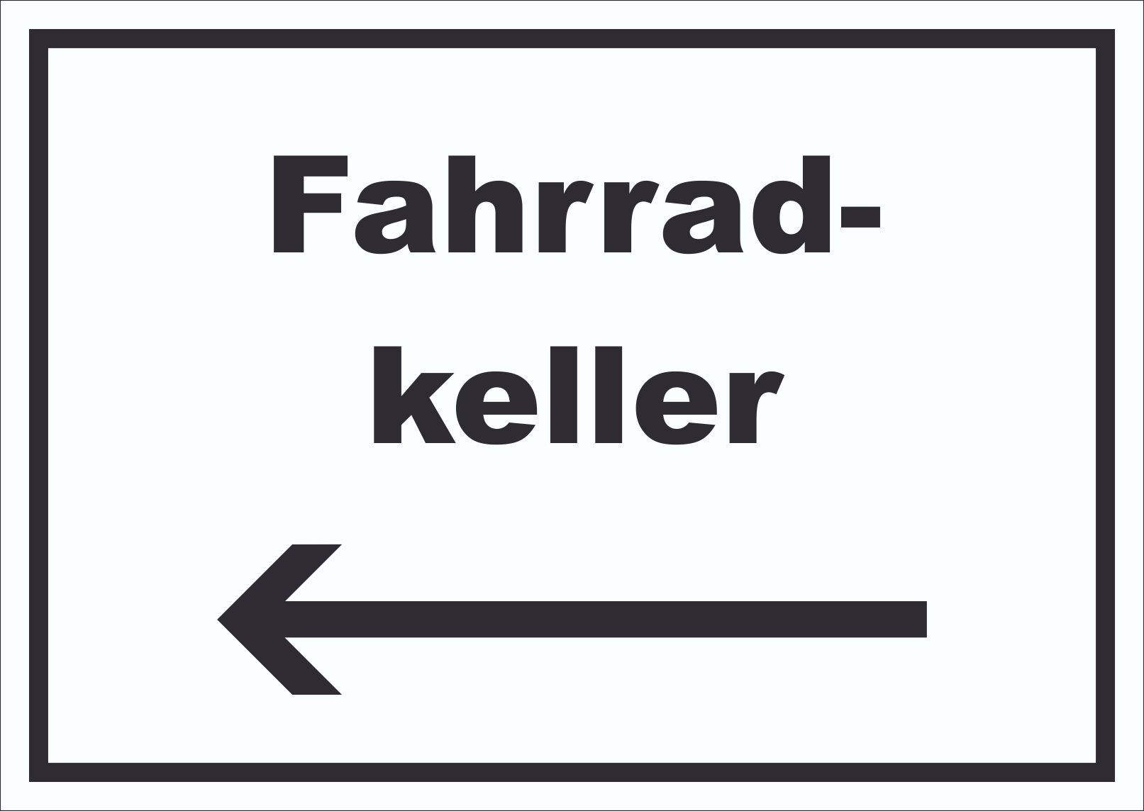 Fahrradkeller Schild mit Text und Richtungspfeil links Rad Bike waagerecht