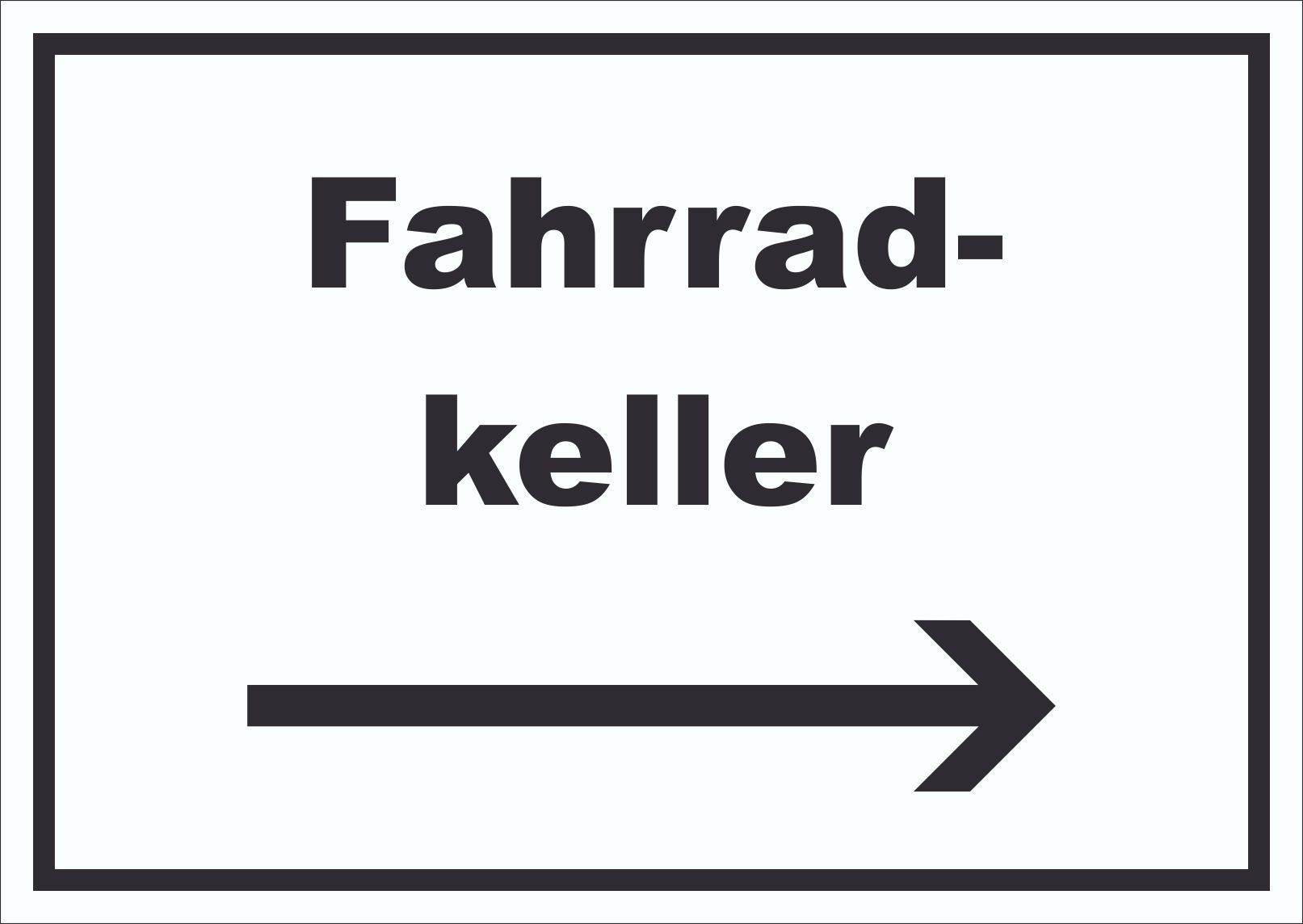 Fahrradkeller Schild mit Text und Richtungspfeil rechts Rad Bike waagerecht