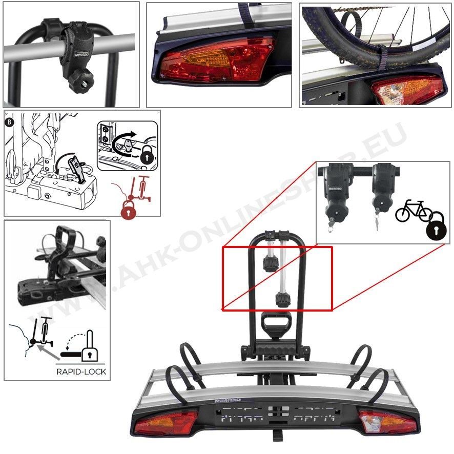 Fahrradträger ALCOR für 2 Räder eBikes Anhängerkupplung abschließbar abklappbar