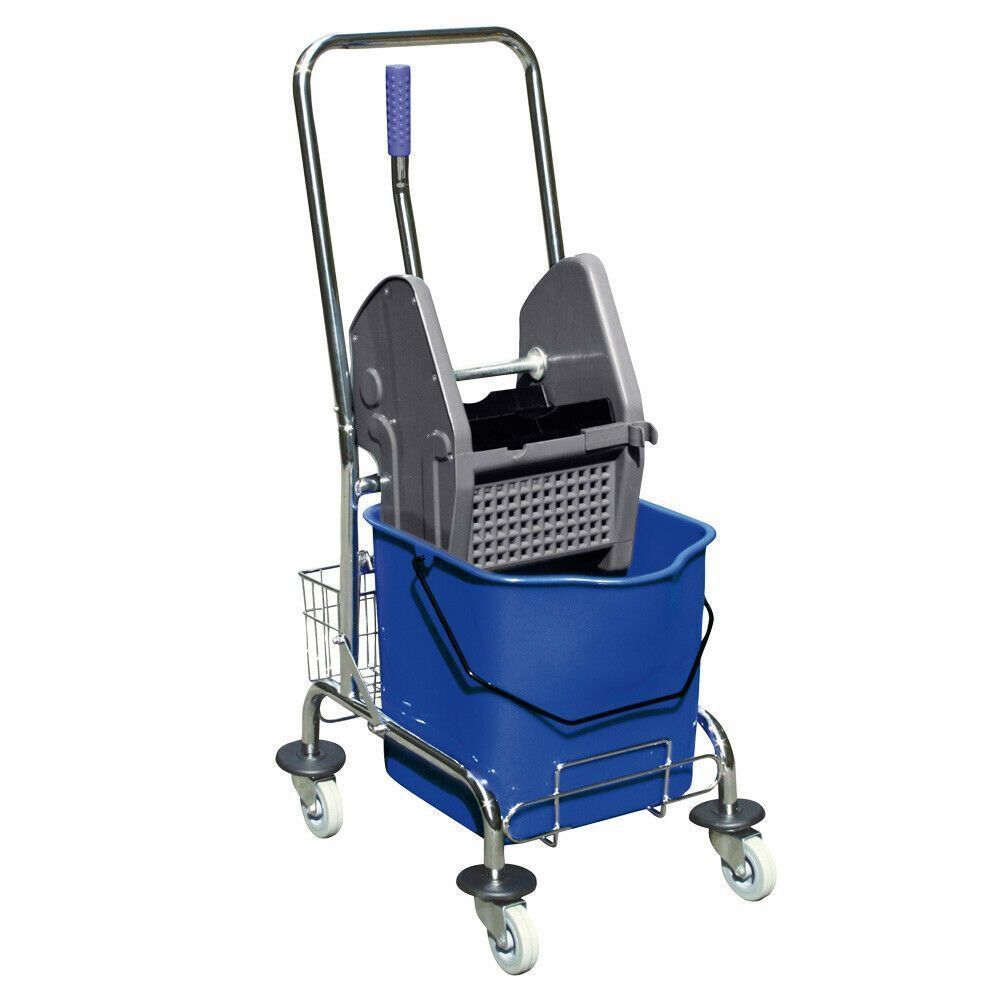 Fahrwagen mit Mopp-Presse, verchromt, Eimer 27 Liter, Schiebebügel u. Drahtkorb