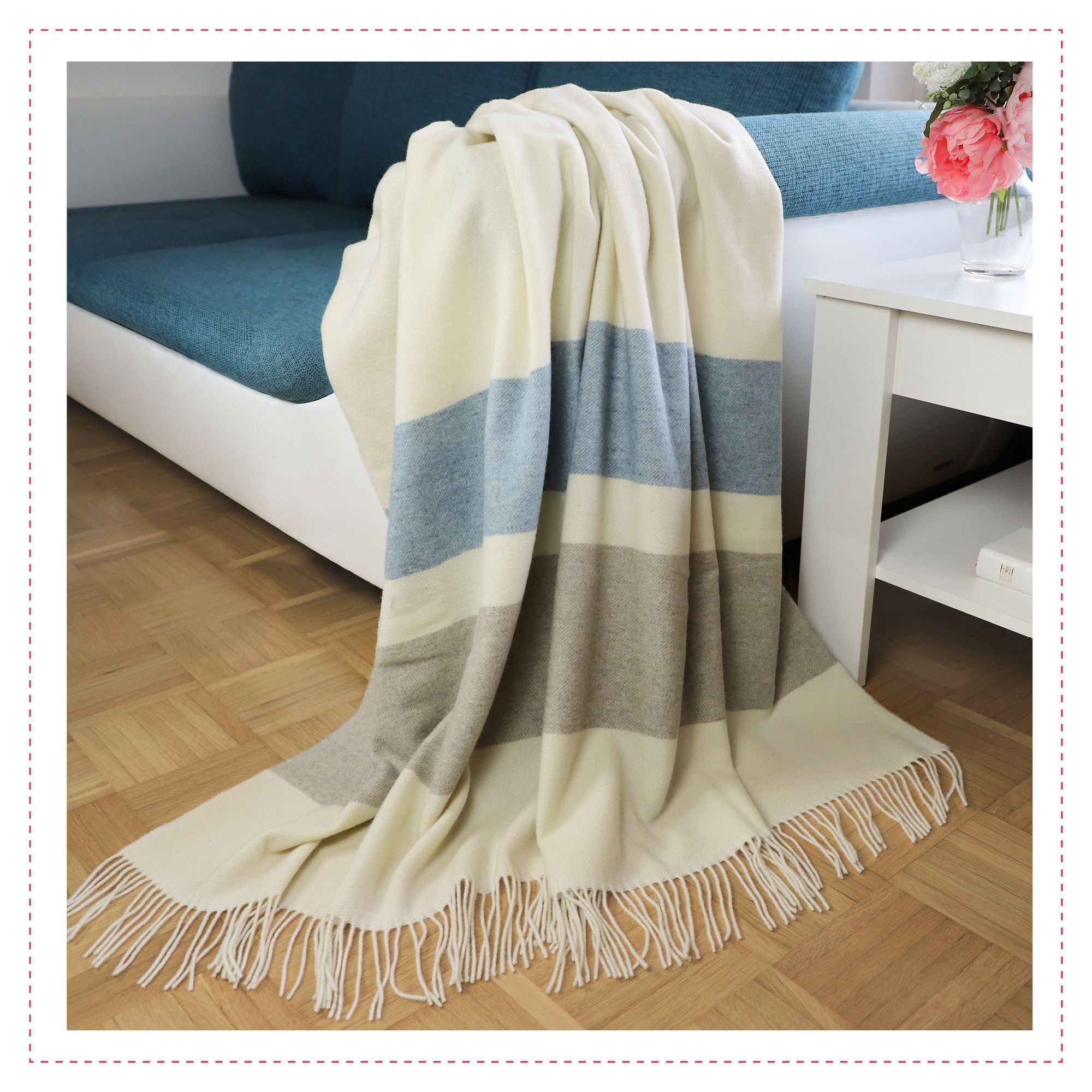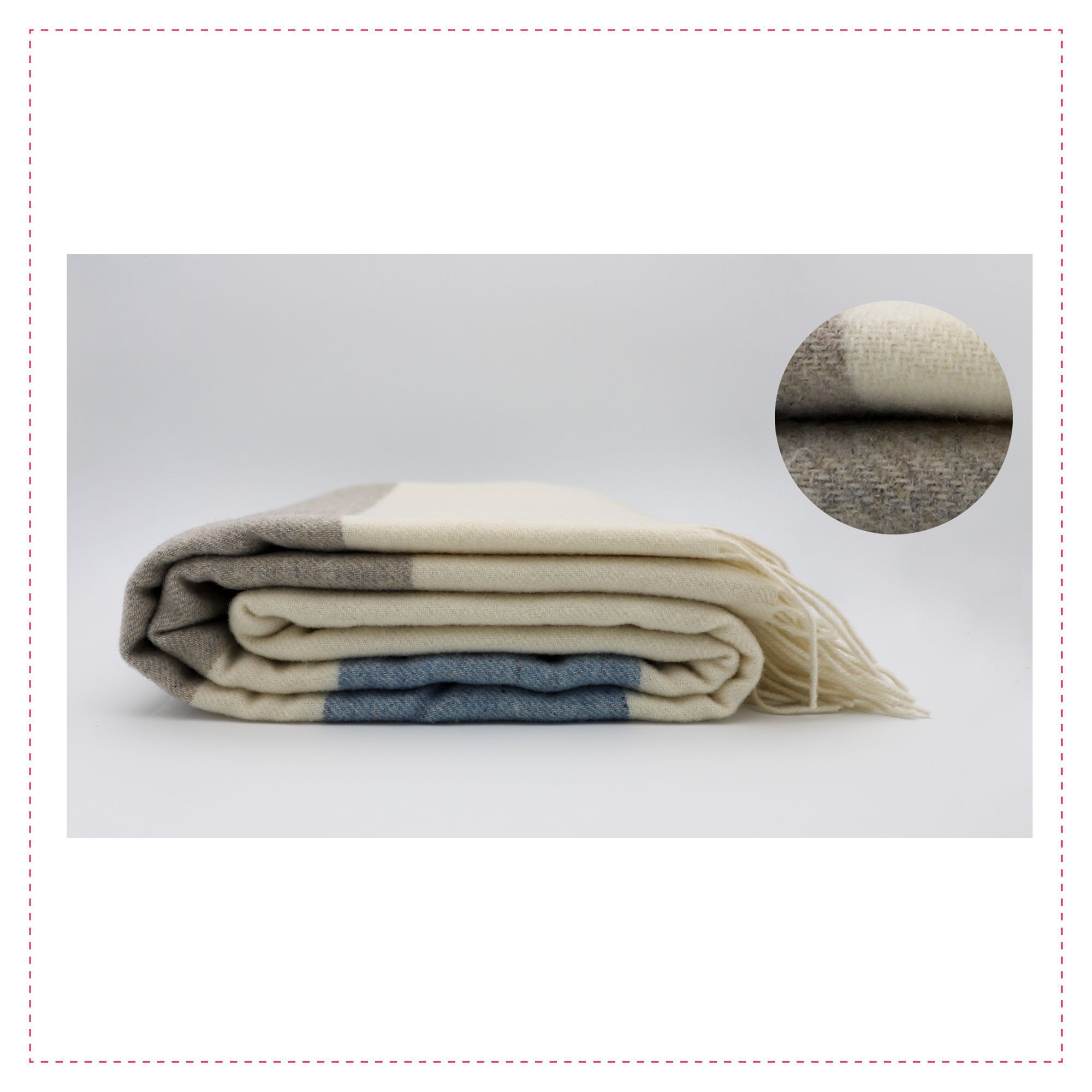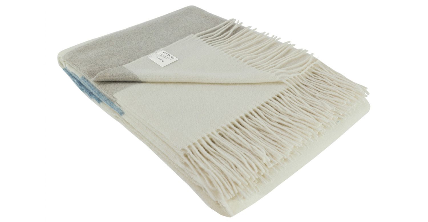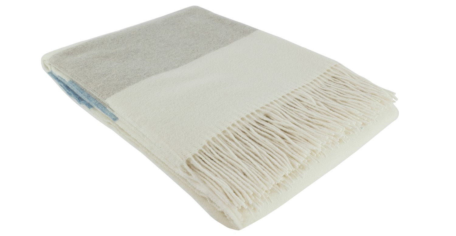 Fair De Luxe Kaschmir Wohndecke | Natur/Blau/Grau
