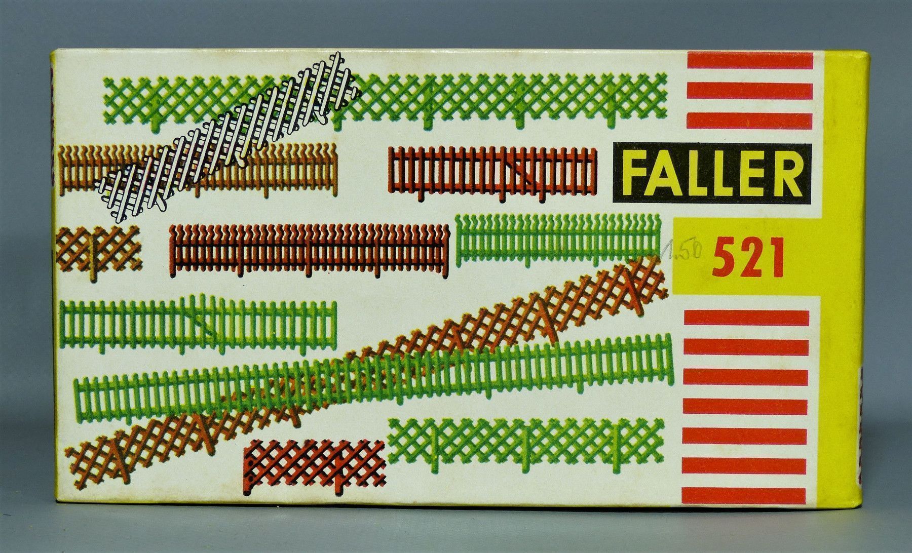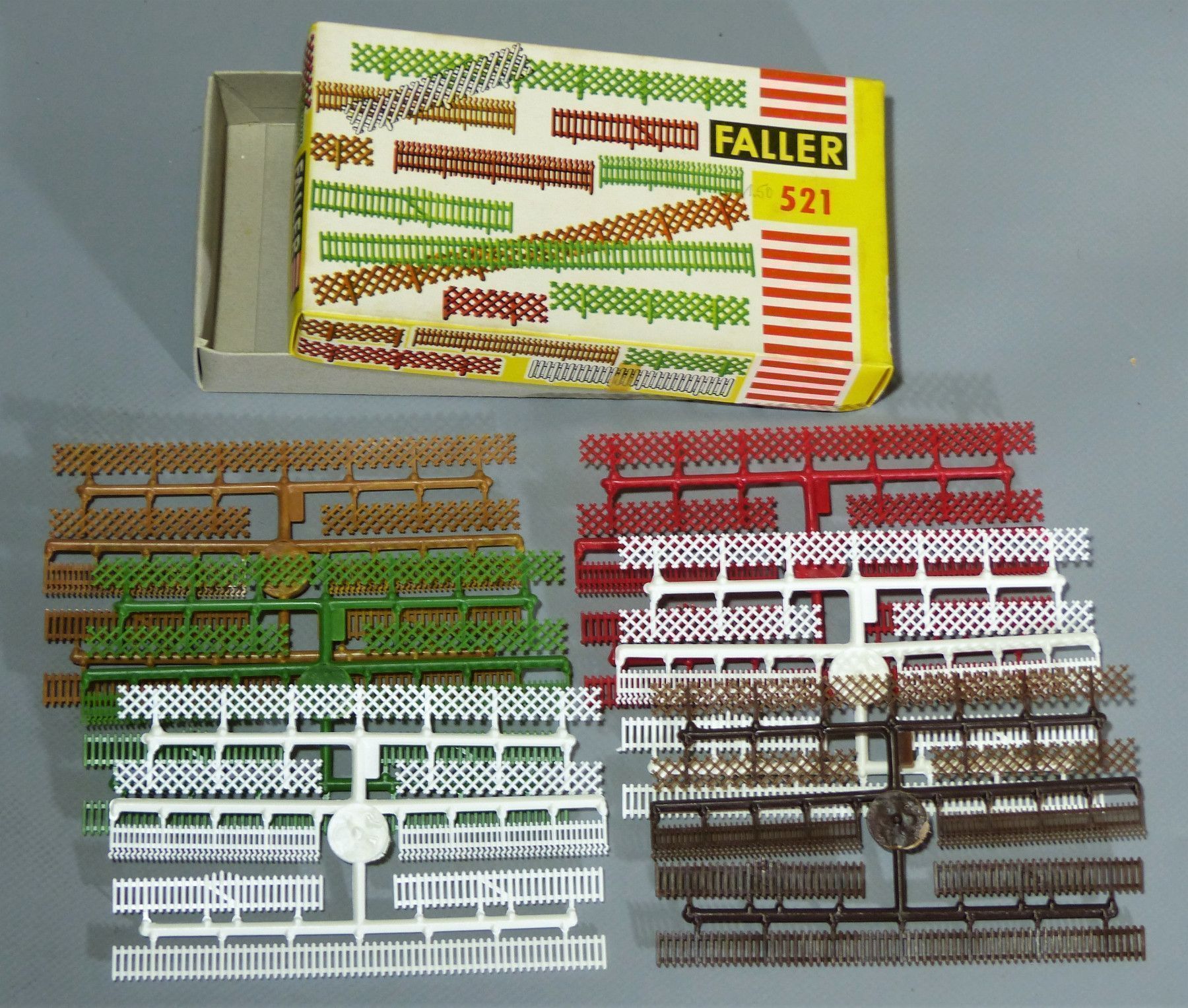 Faller H0 Modellbahnzubehör Eine original Packung aus den 50er 60er Jahren Nr. 521 - Sortiment Gartenzäune, farblich sortiert - siehe Bild Das Sortiment ist KOMPLETT und NEU in OVP ! Für weitere Bilder oder Fragen zum Artikel kontaktieren Sie mich ! Ich nehme jederzeit realistische Preisvorschläge e