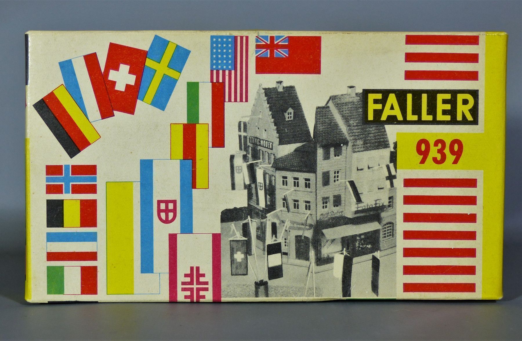 Faller Faller H0 939 Fahnenset Fahnen Stoff Masten Fahnenmasten 50er/60er Jahre NEU OVP