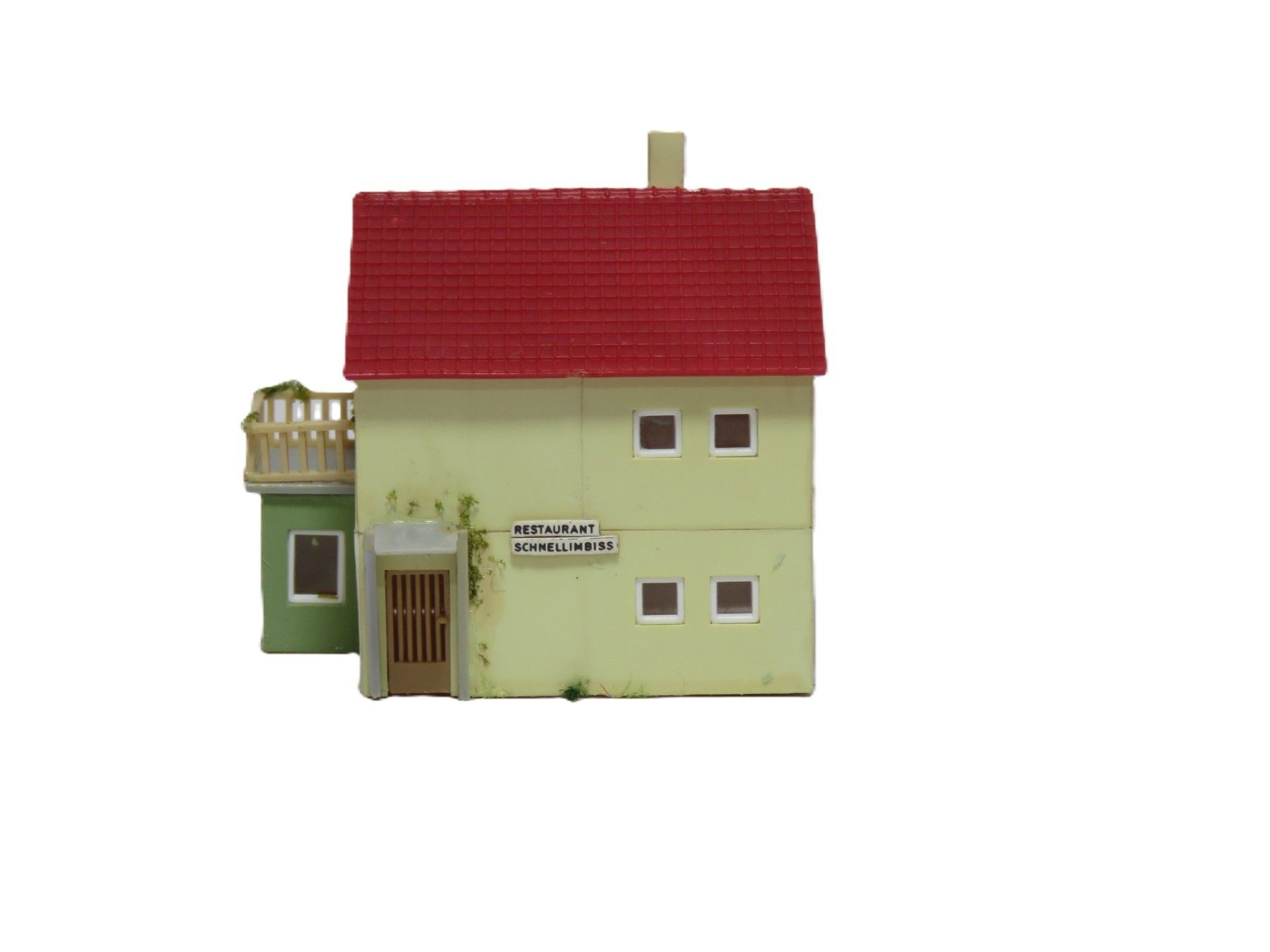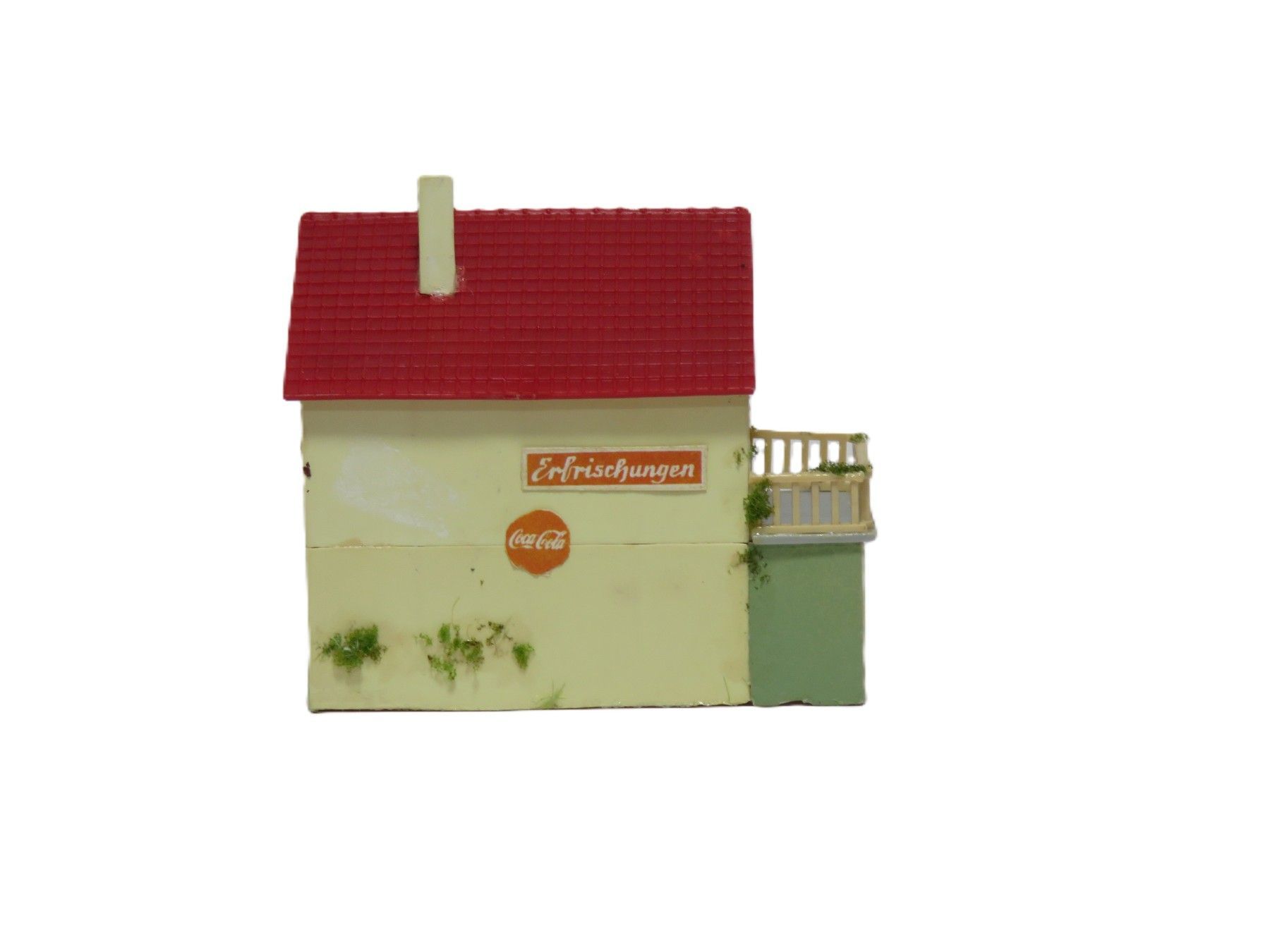 Wassertum mit einigem Zubehör zur Ausgestaltung, z.B. Wellblechhütte, Schwellenstapel. Passend durch die äußere Gestaltung auch an Nebenbahnstrecken, kleiner Bahnhof o.ä. zur Lokversorgung.