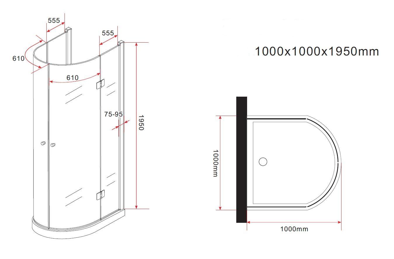 faltbare U-Duschkabine Semio 100 x 100 x 195 cm ohne Duschtasse