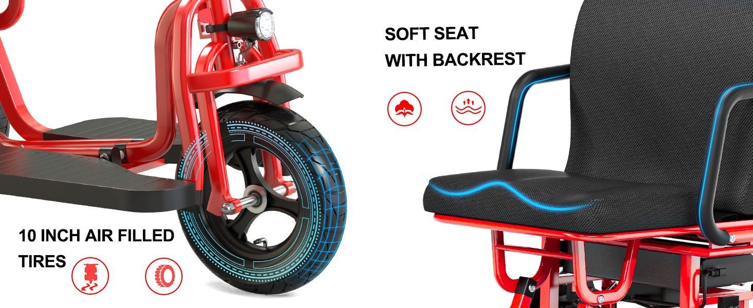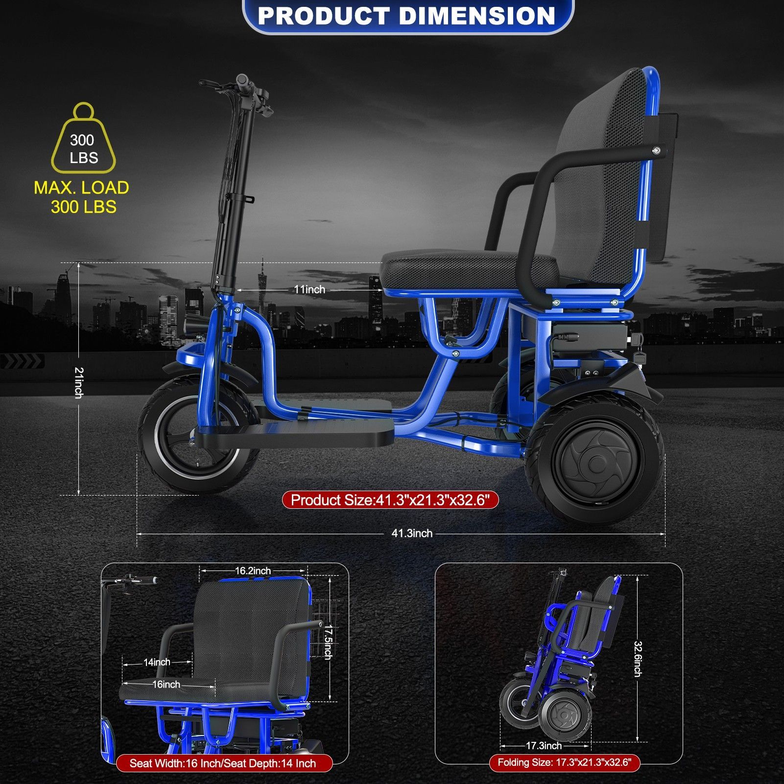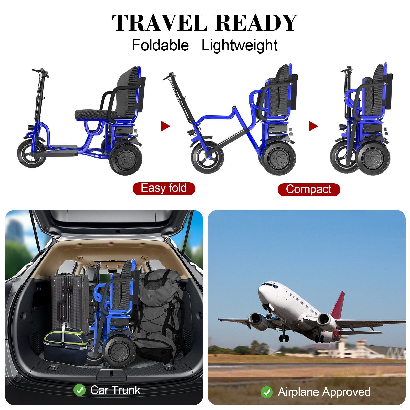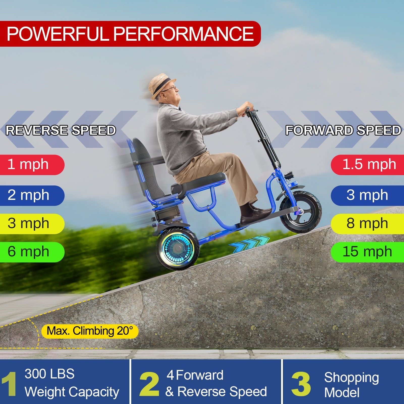 Faltbarer 3-Rad-Mobilitätsroller 20 Meilen Reichweite, unterstützt 300 lbs Rot Blau