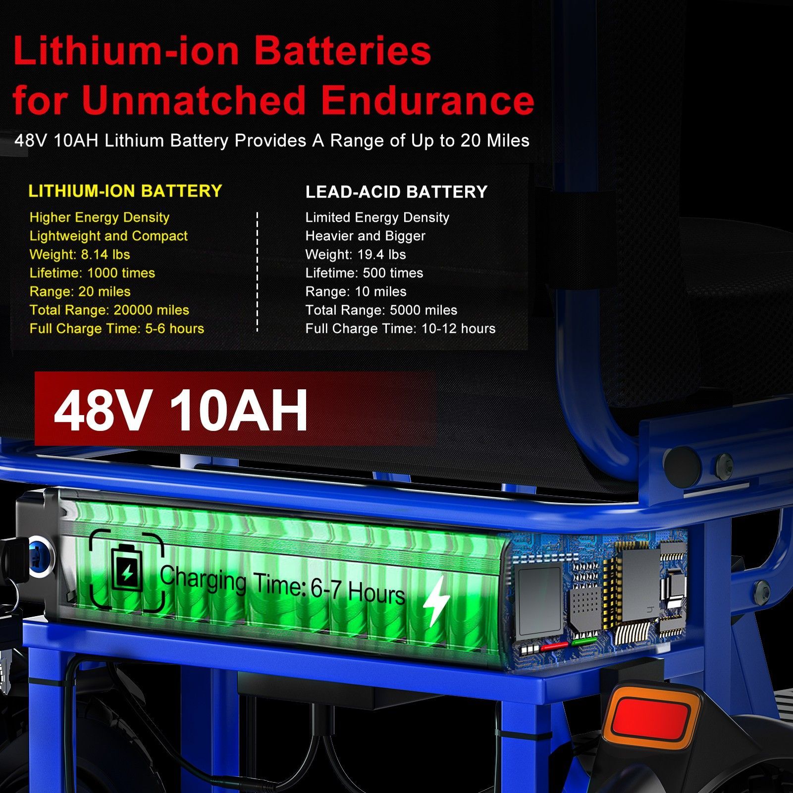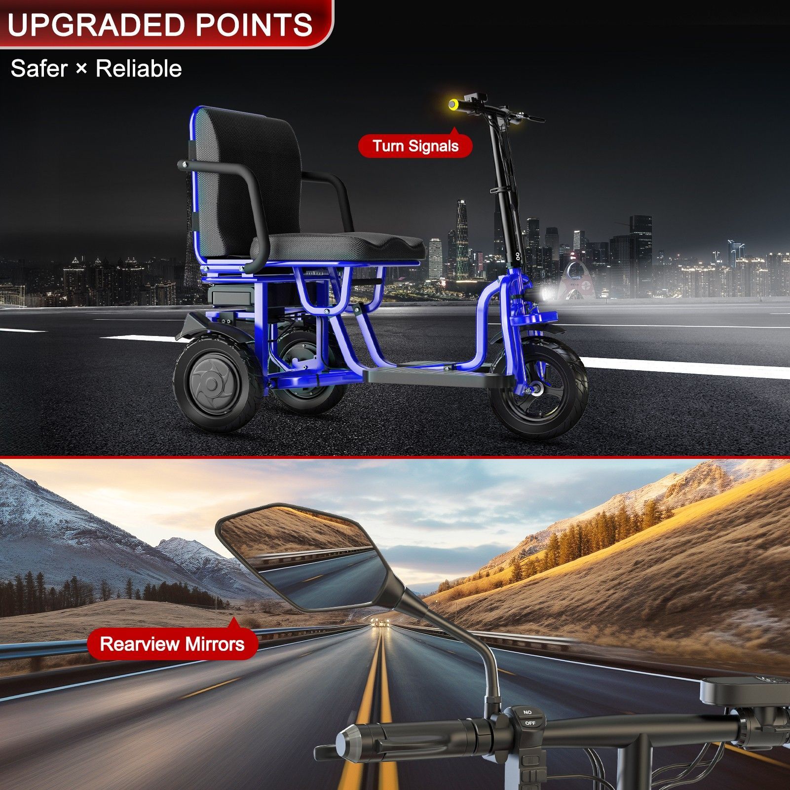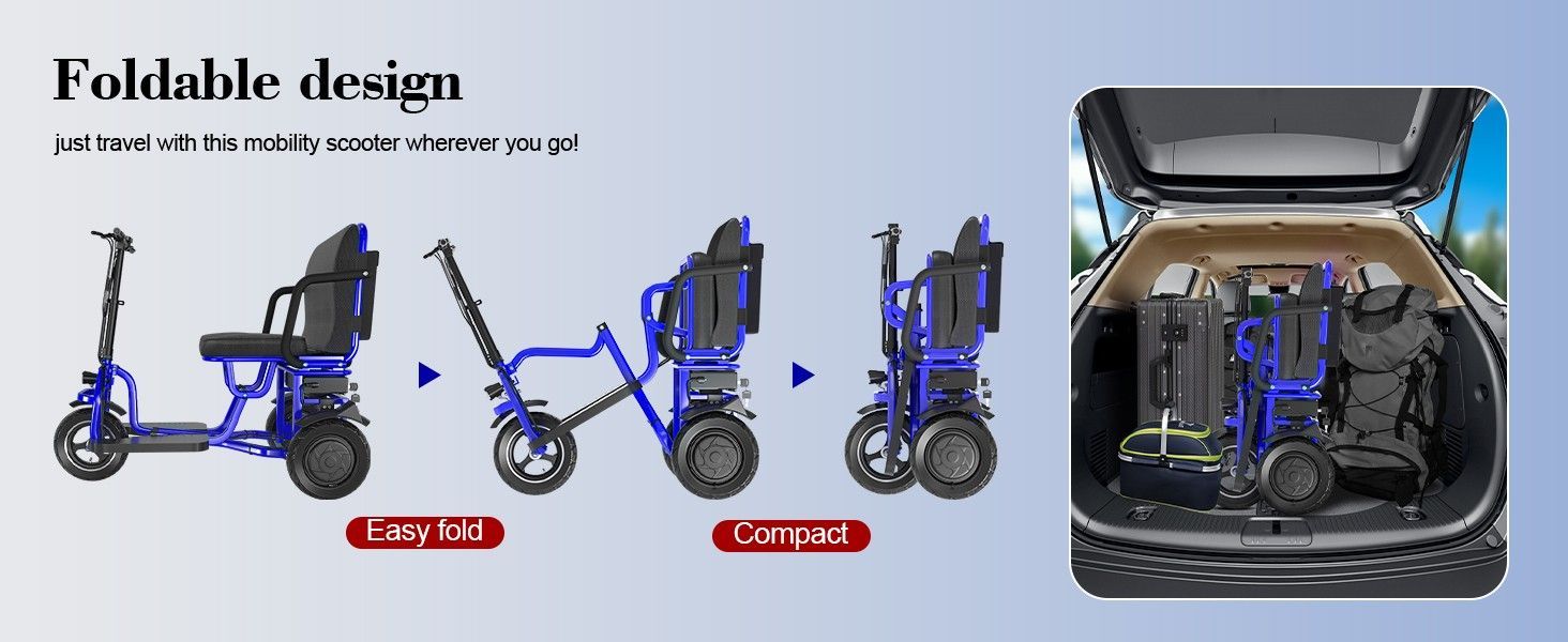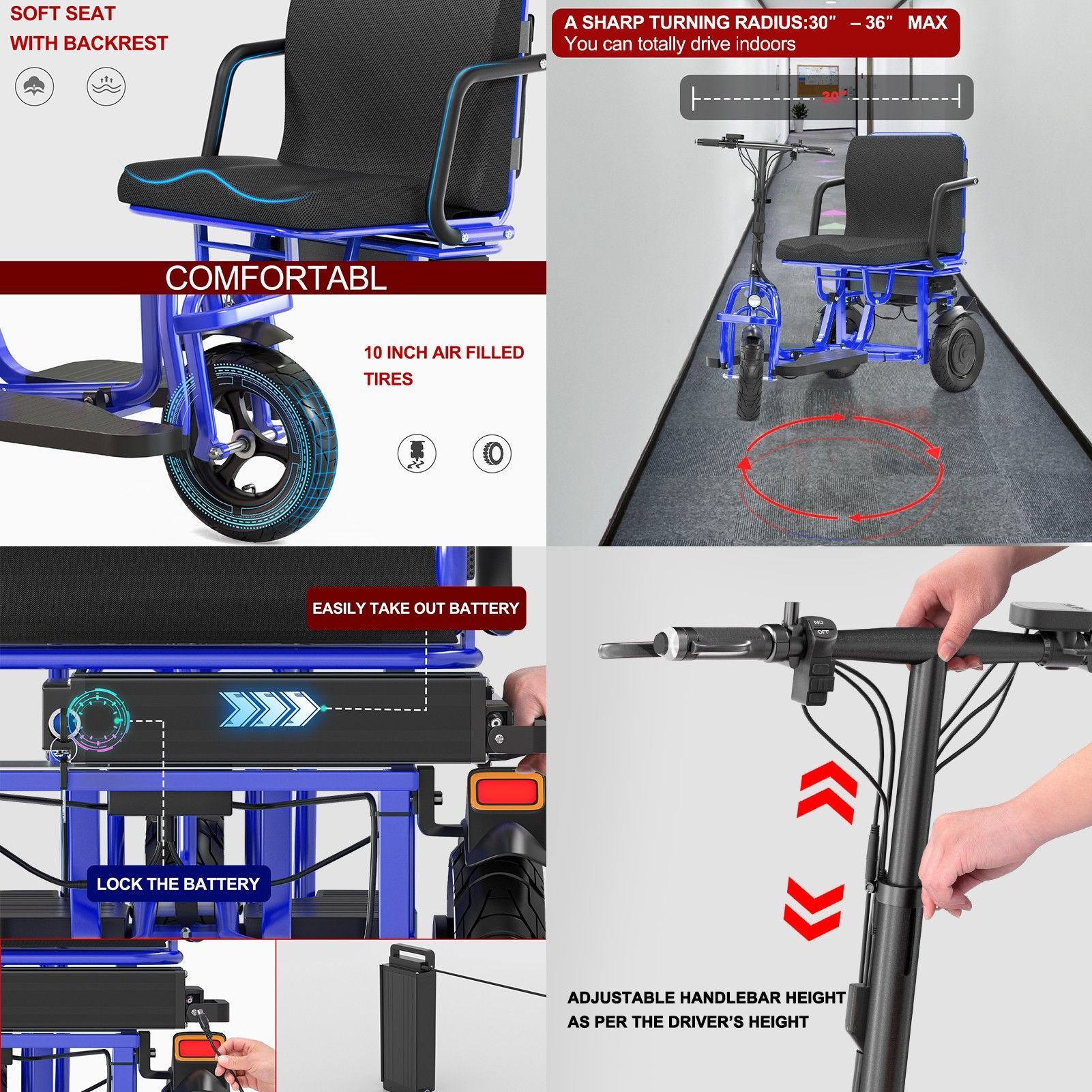 Faltbarer 3-Rad-Mobilitätsroller 20 Meilen Reichweite, unterstützt 300 lbs Rot Blau