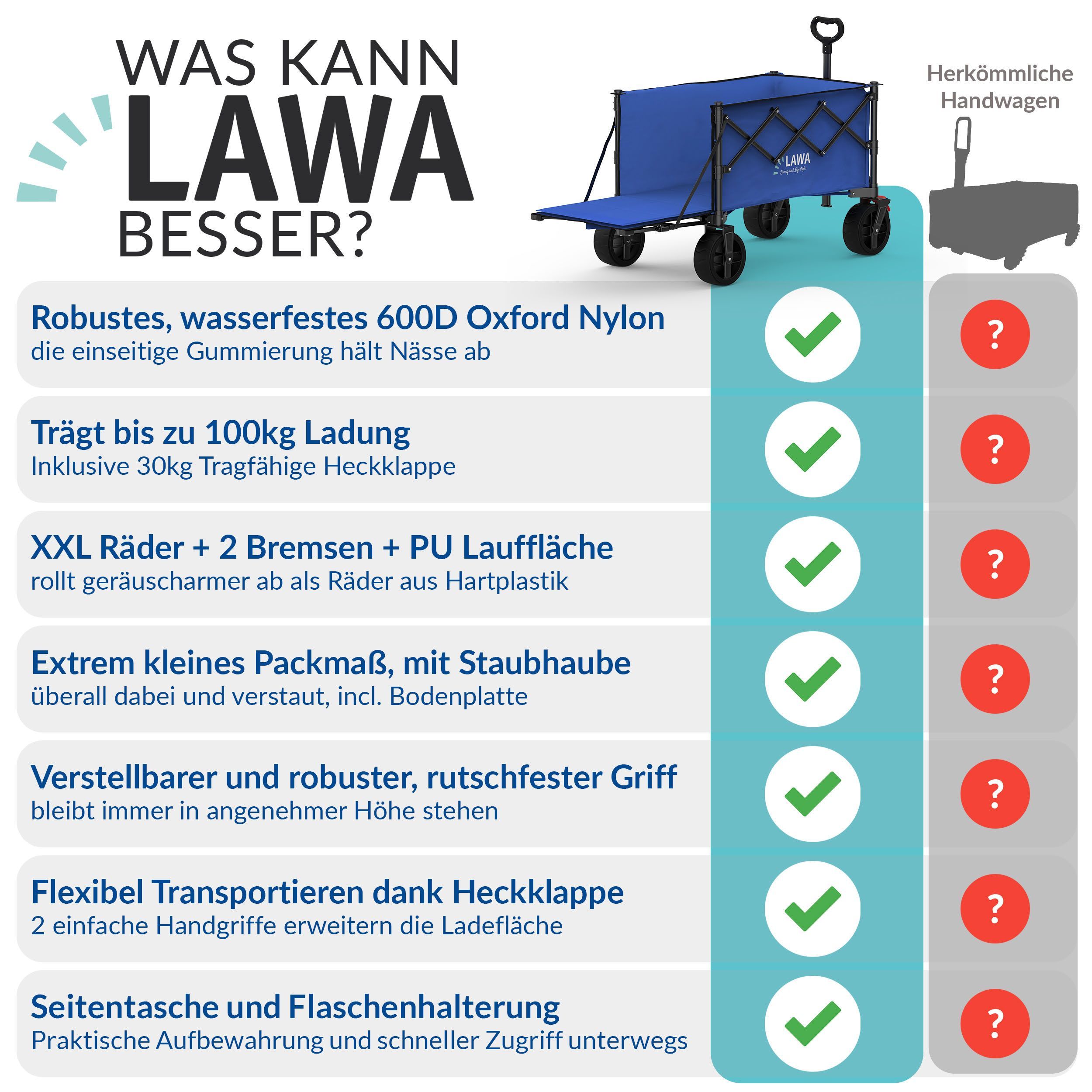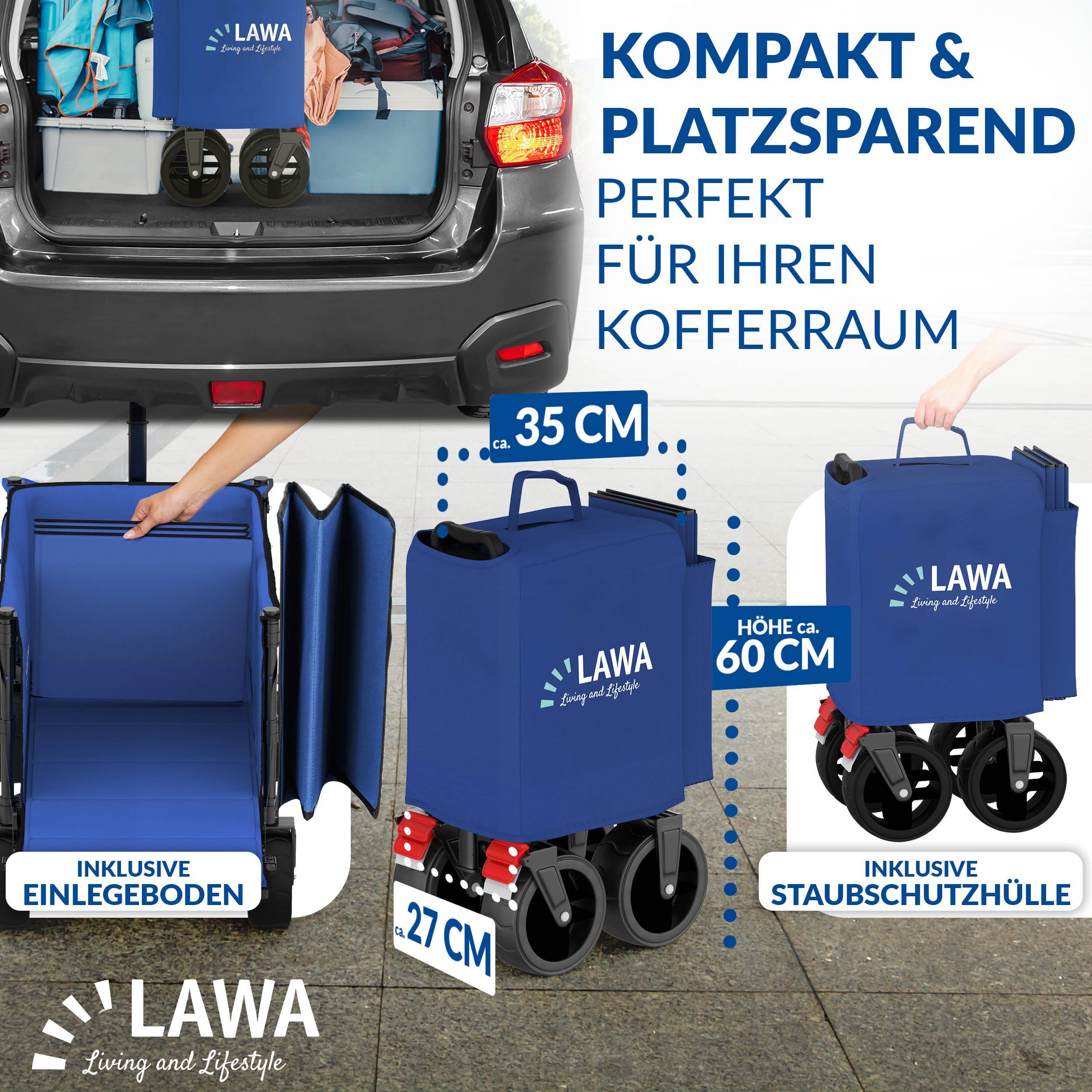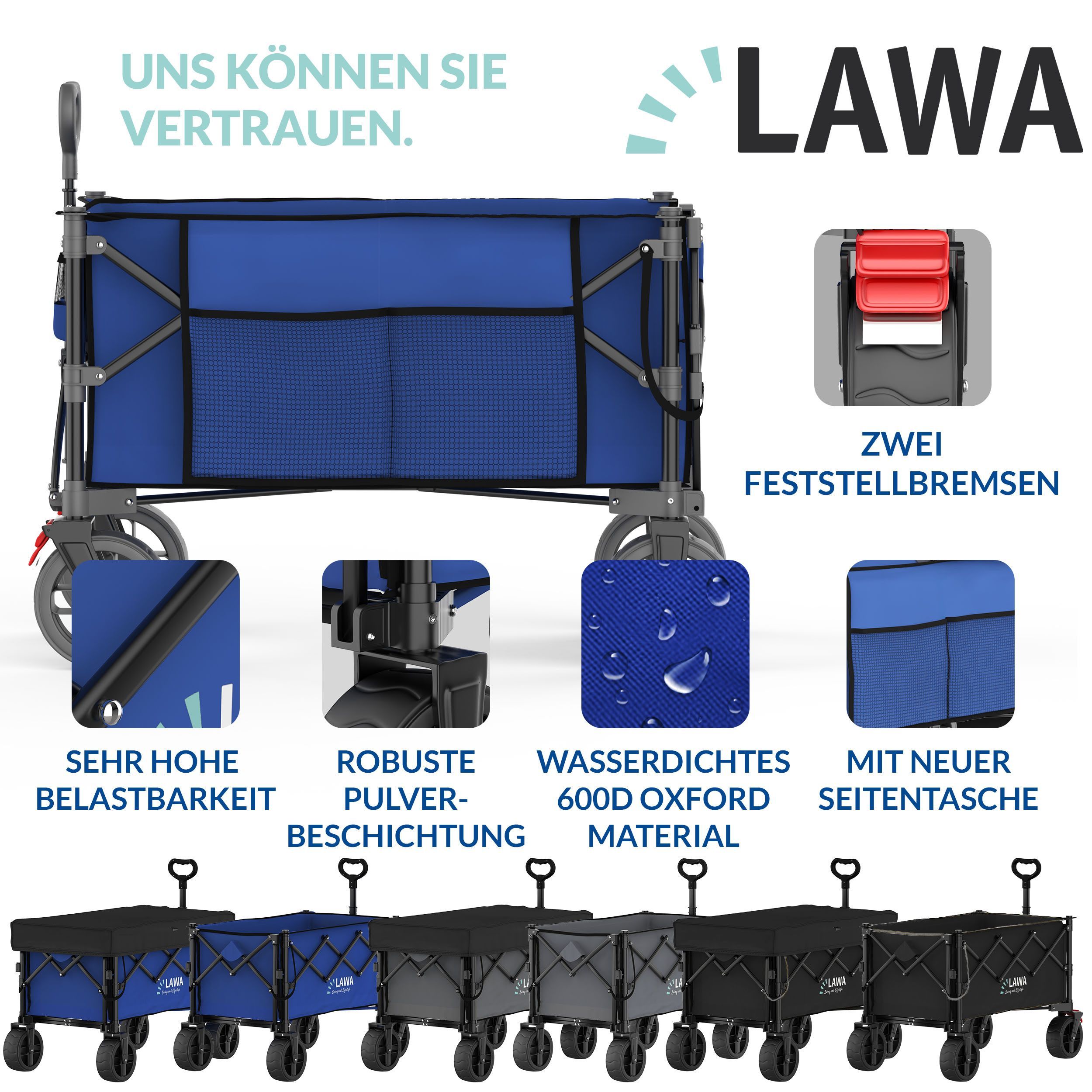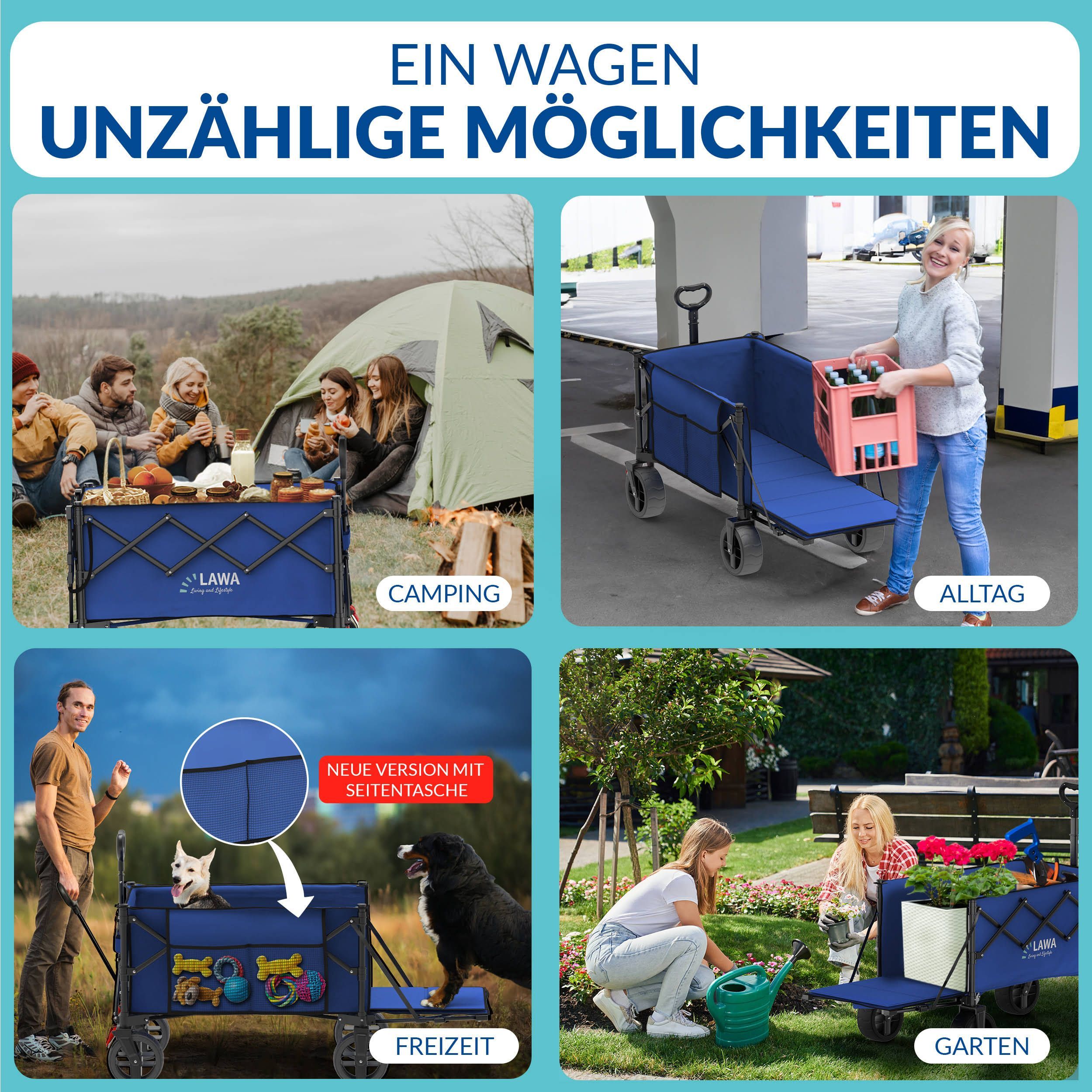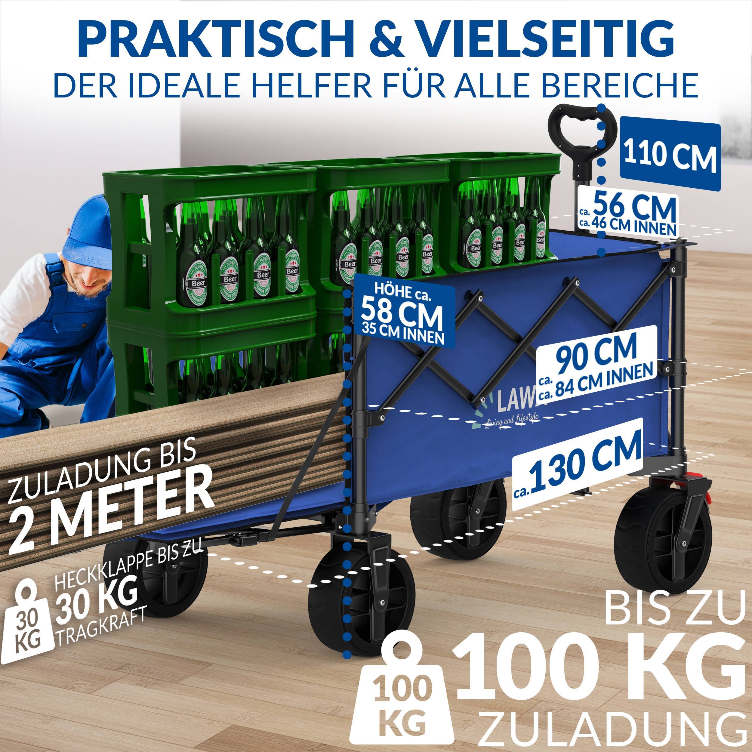 faltbarer Bollerwagen 100kg Bremse Seitentasche Heckklappe klein 130l leicht - blau B