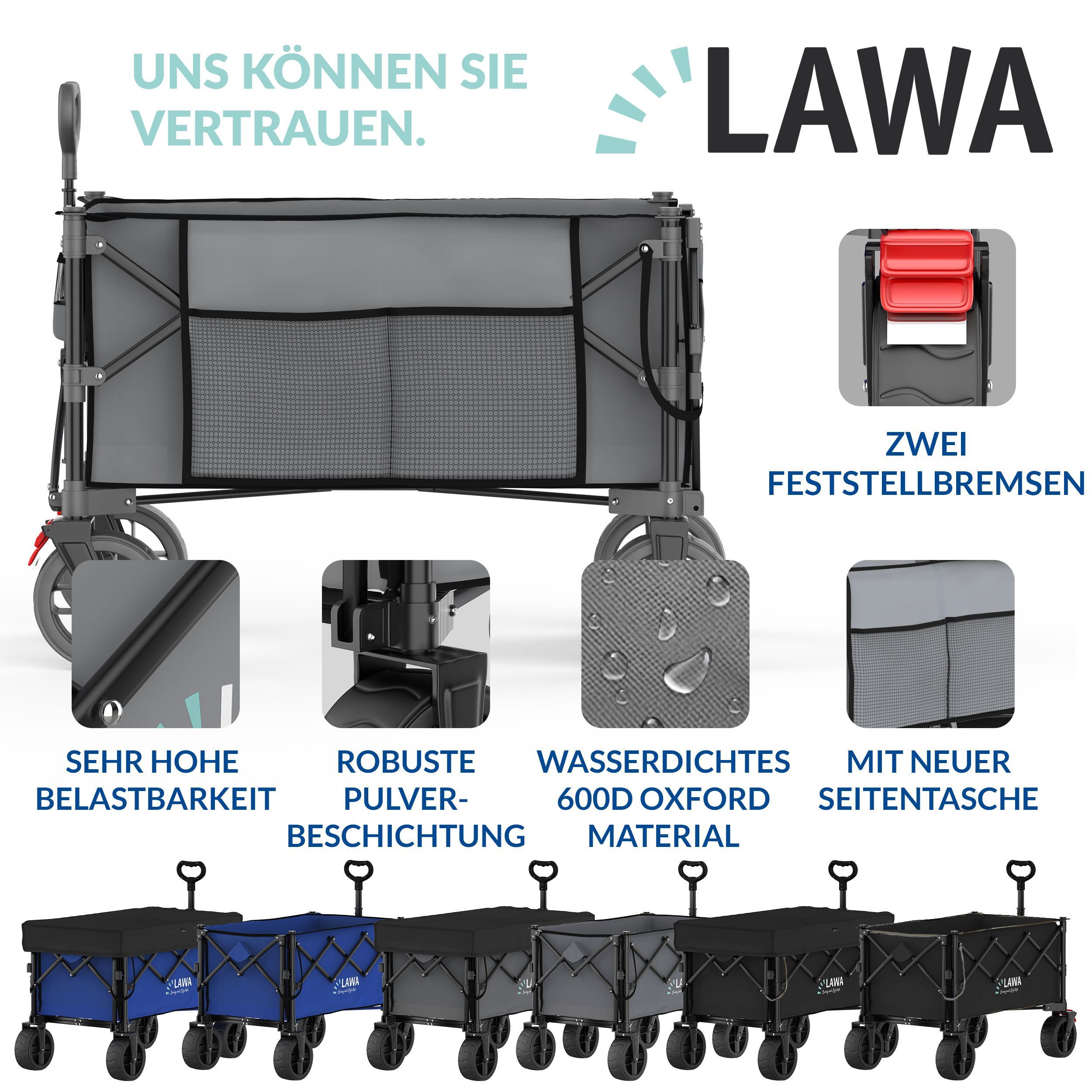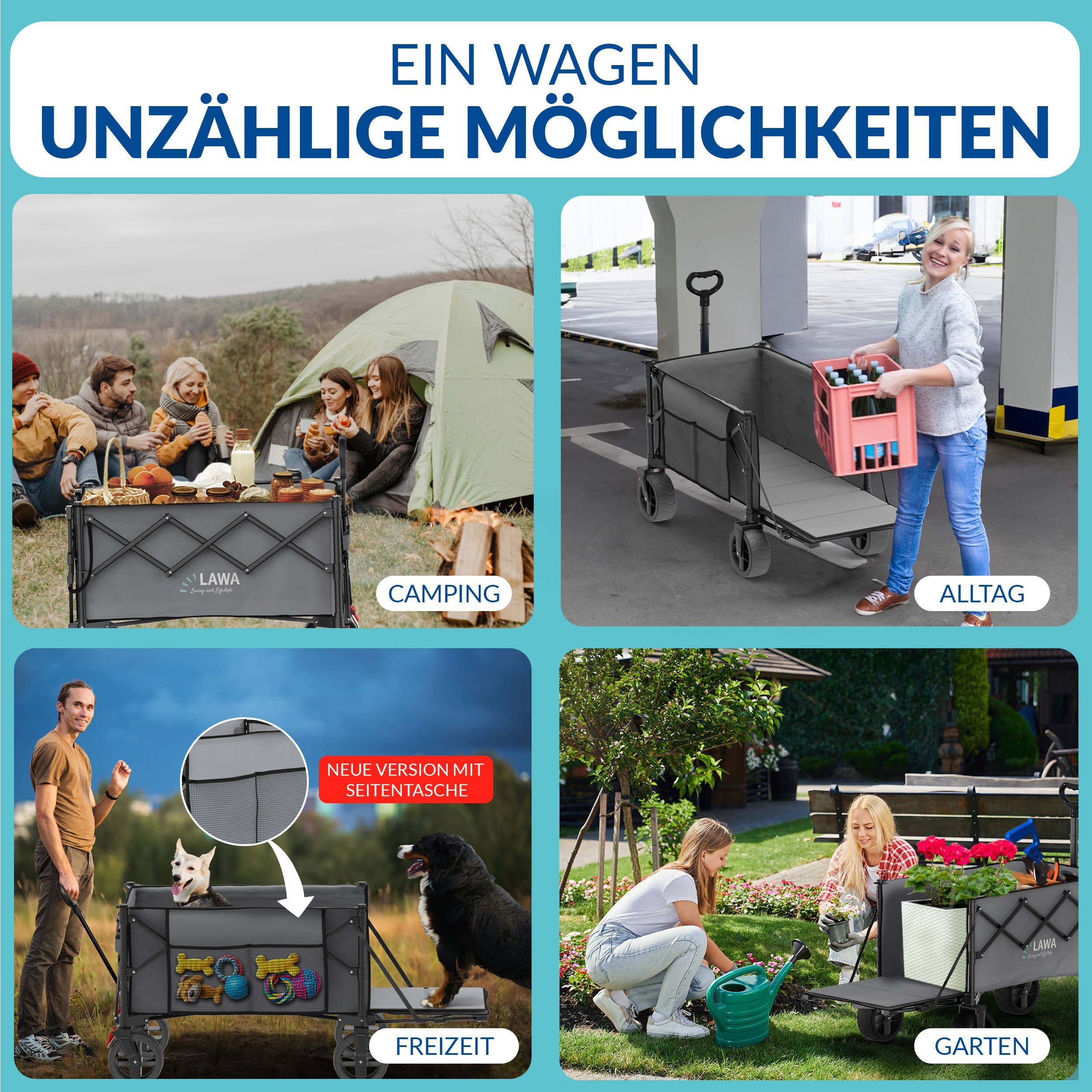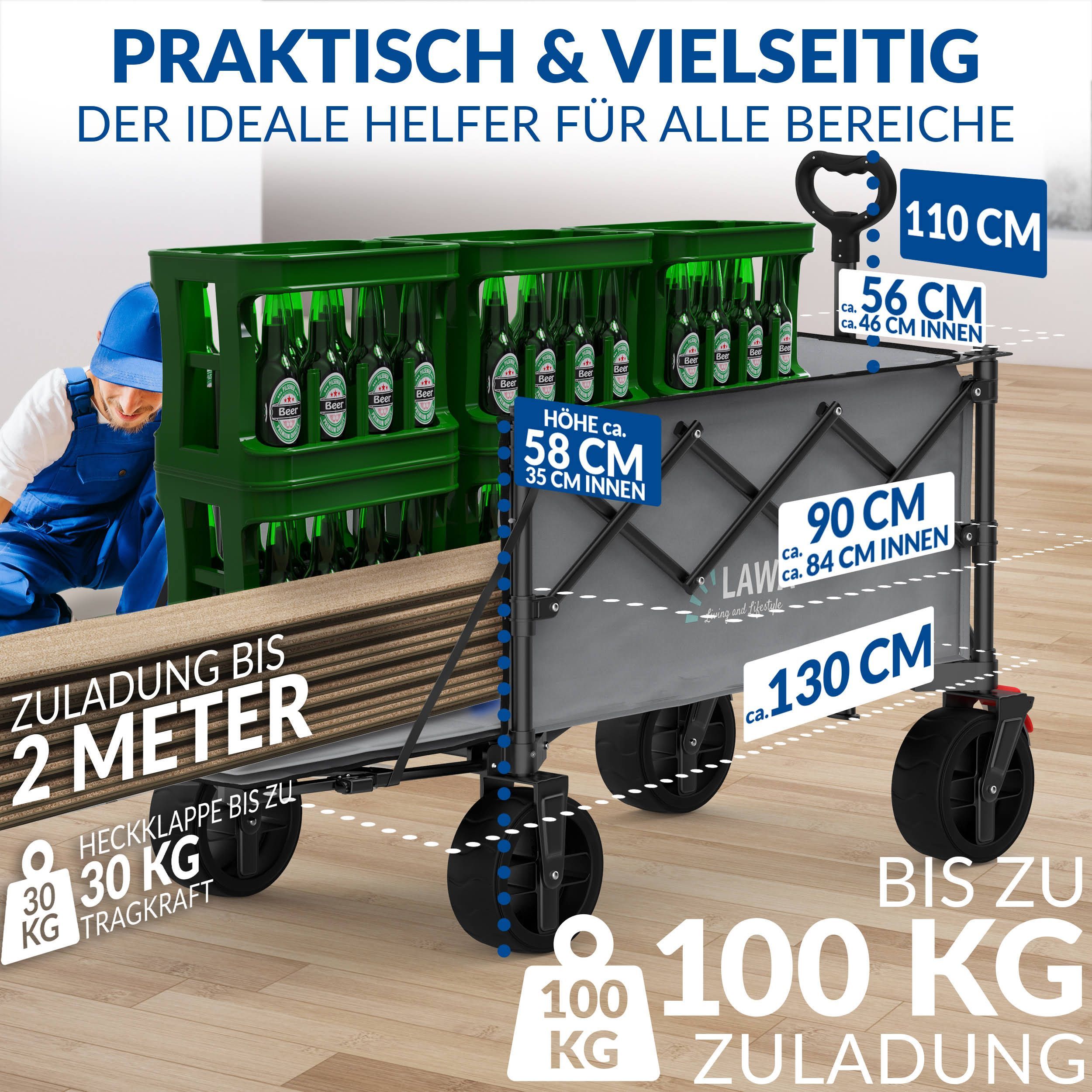 faltbarer Bollerwagen Bremse 100kg Seitentasche Heckklappe klein 130l leicht - grau B
