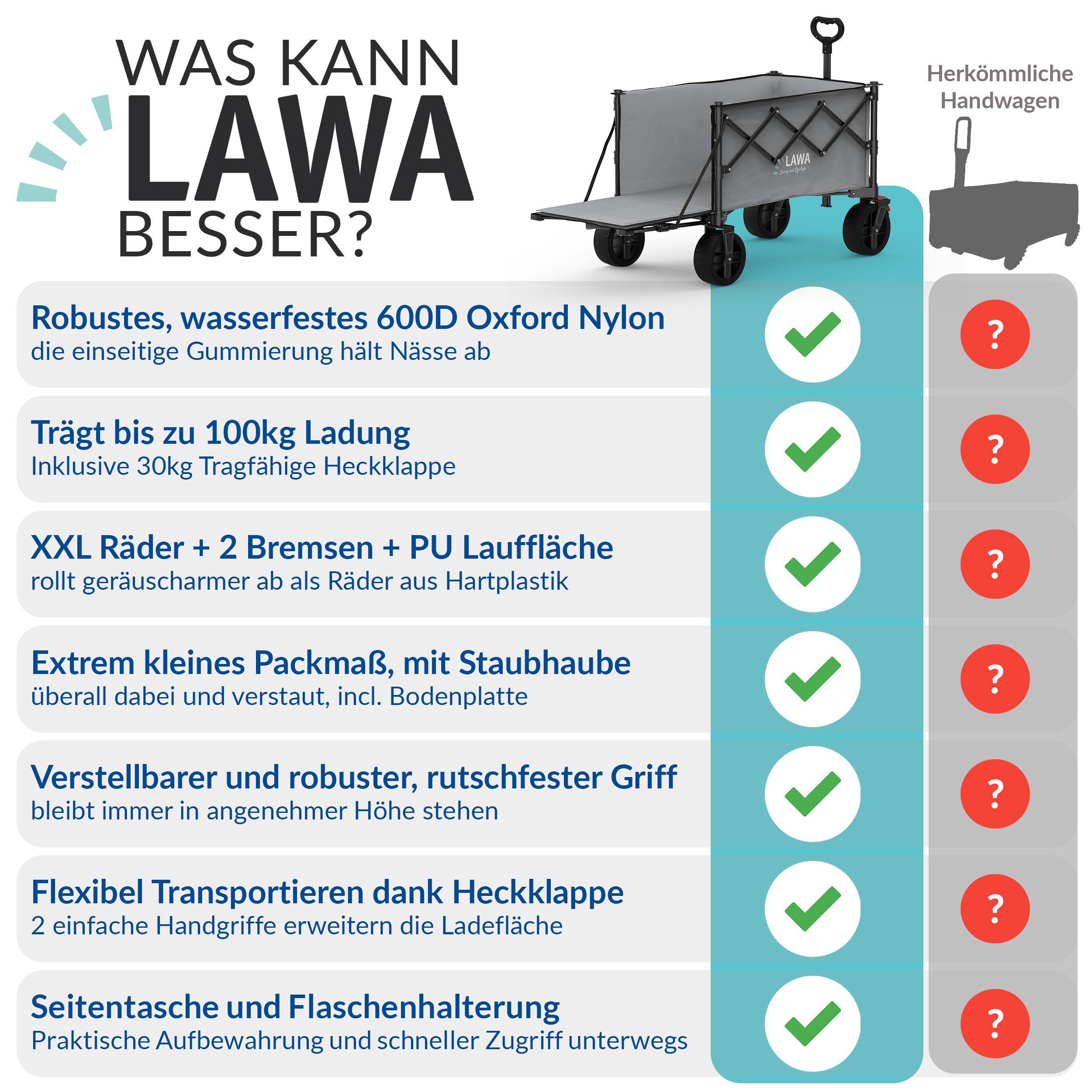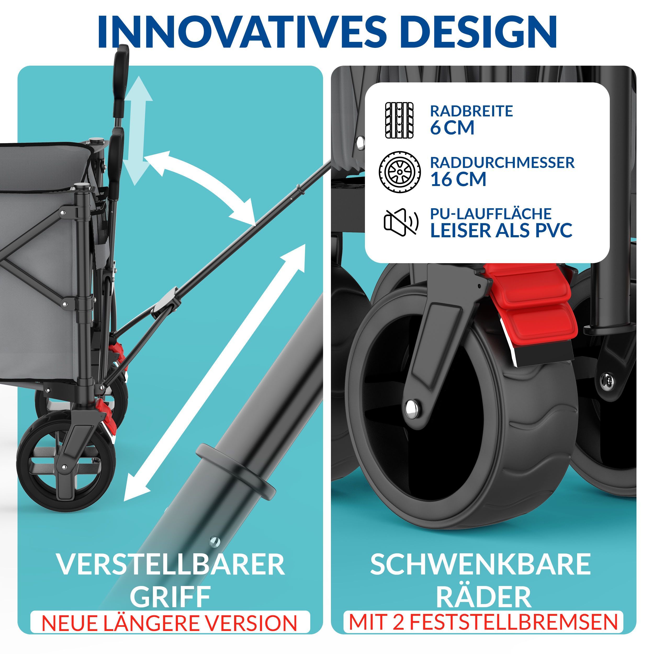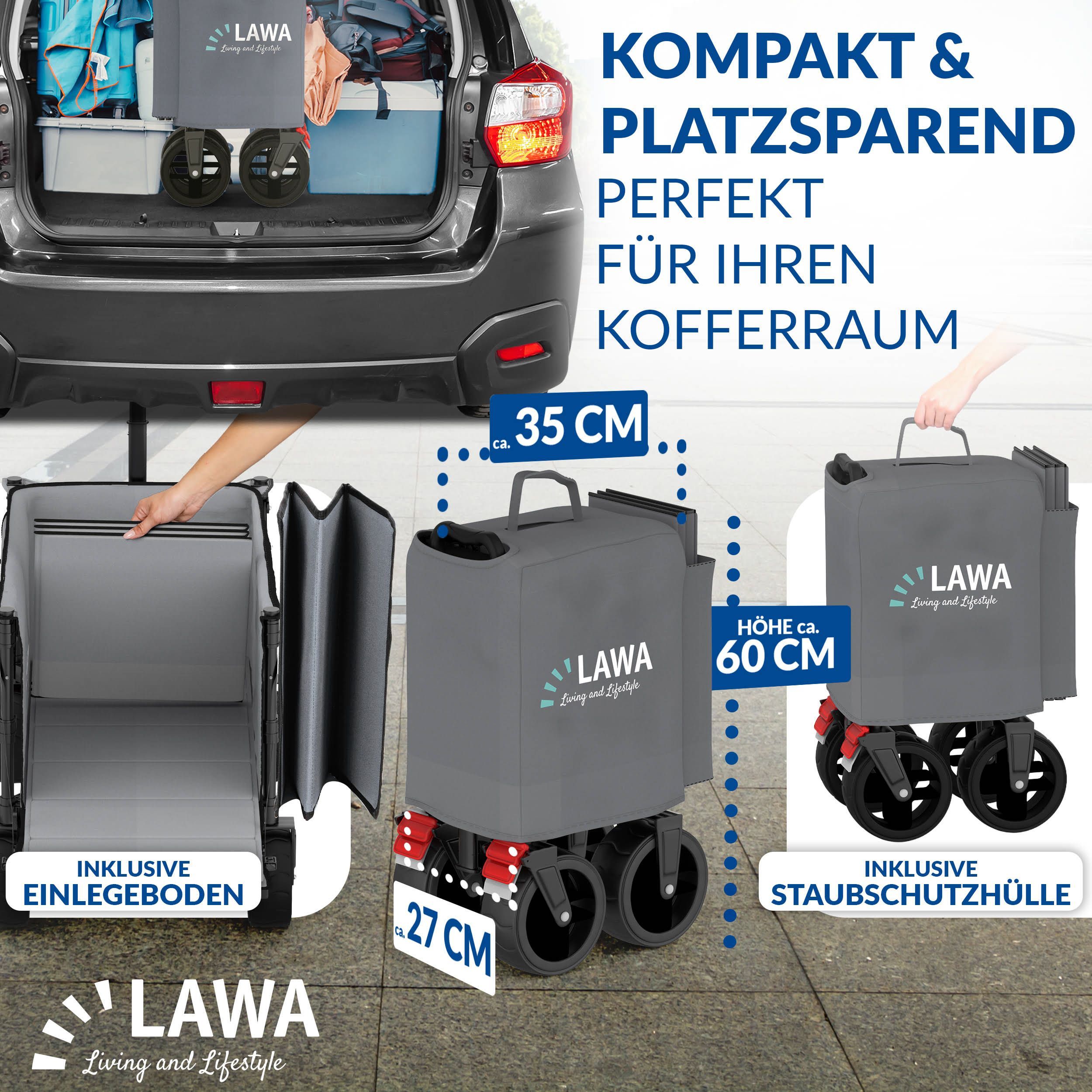 faltbarer Bollerwagen Bremse 100kg Seitentasche Heckklappe klein 130l leicht - grau B