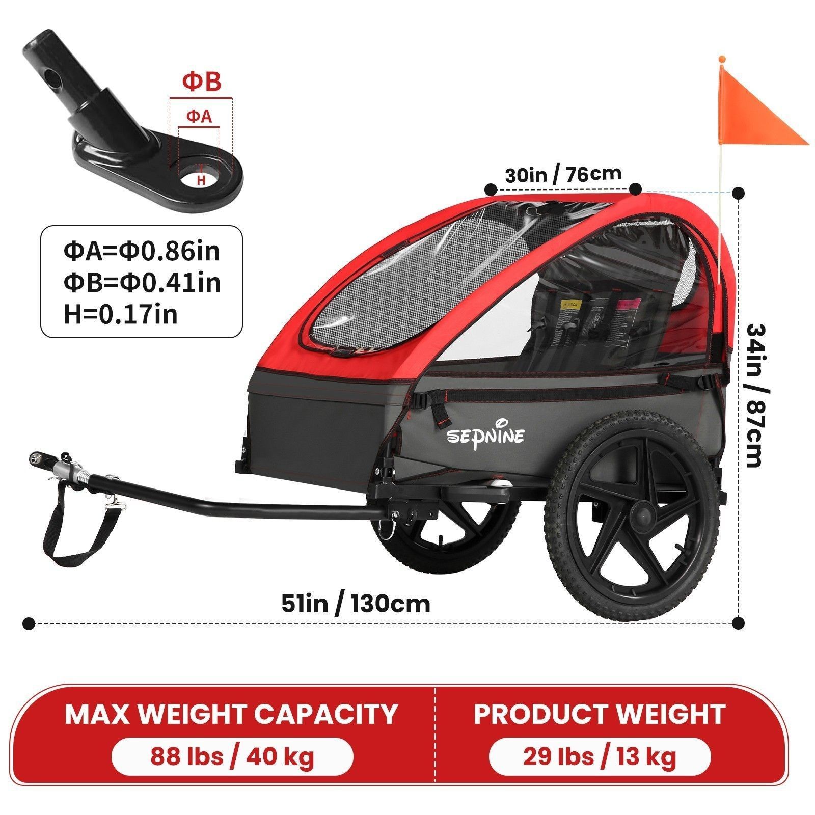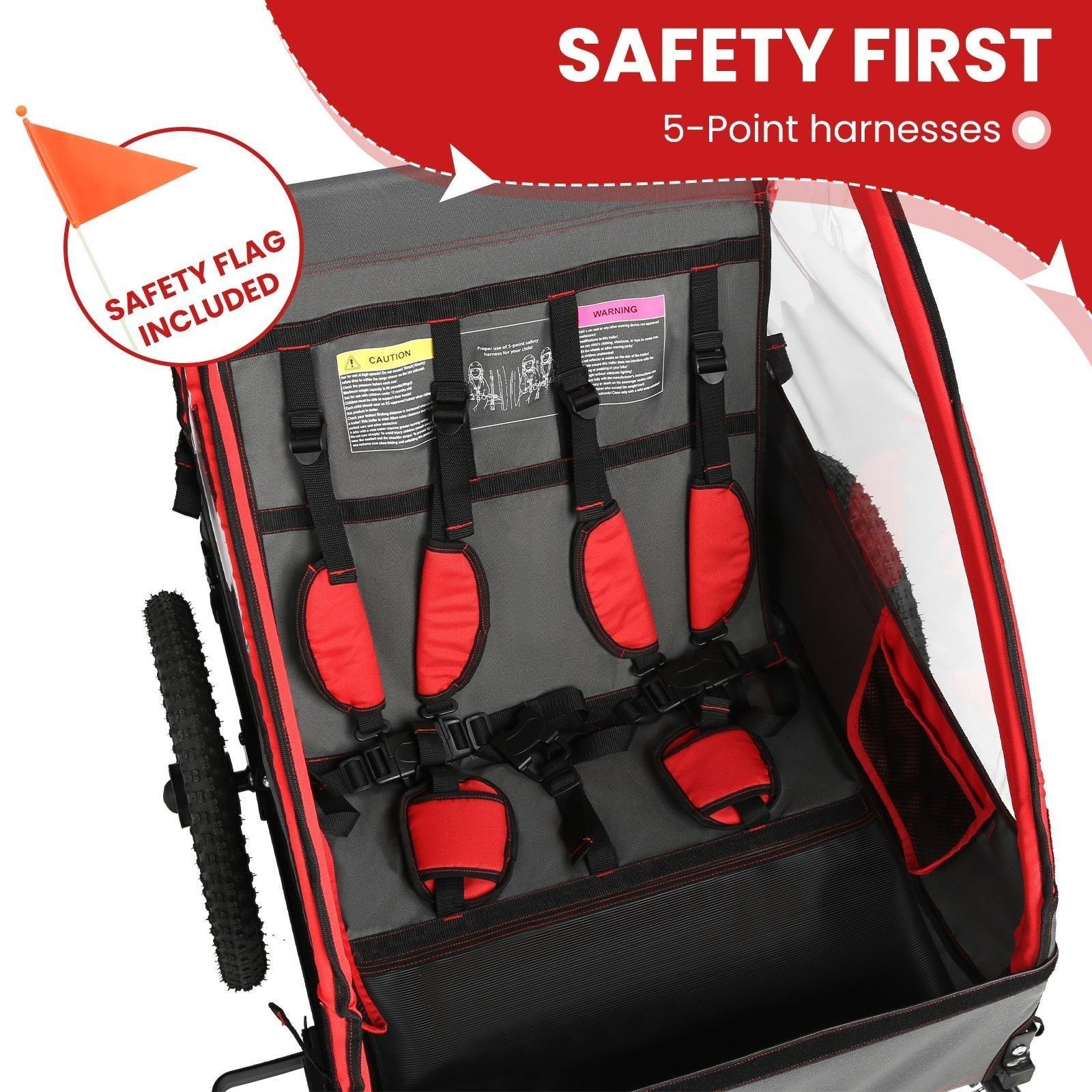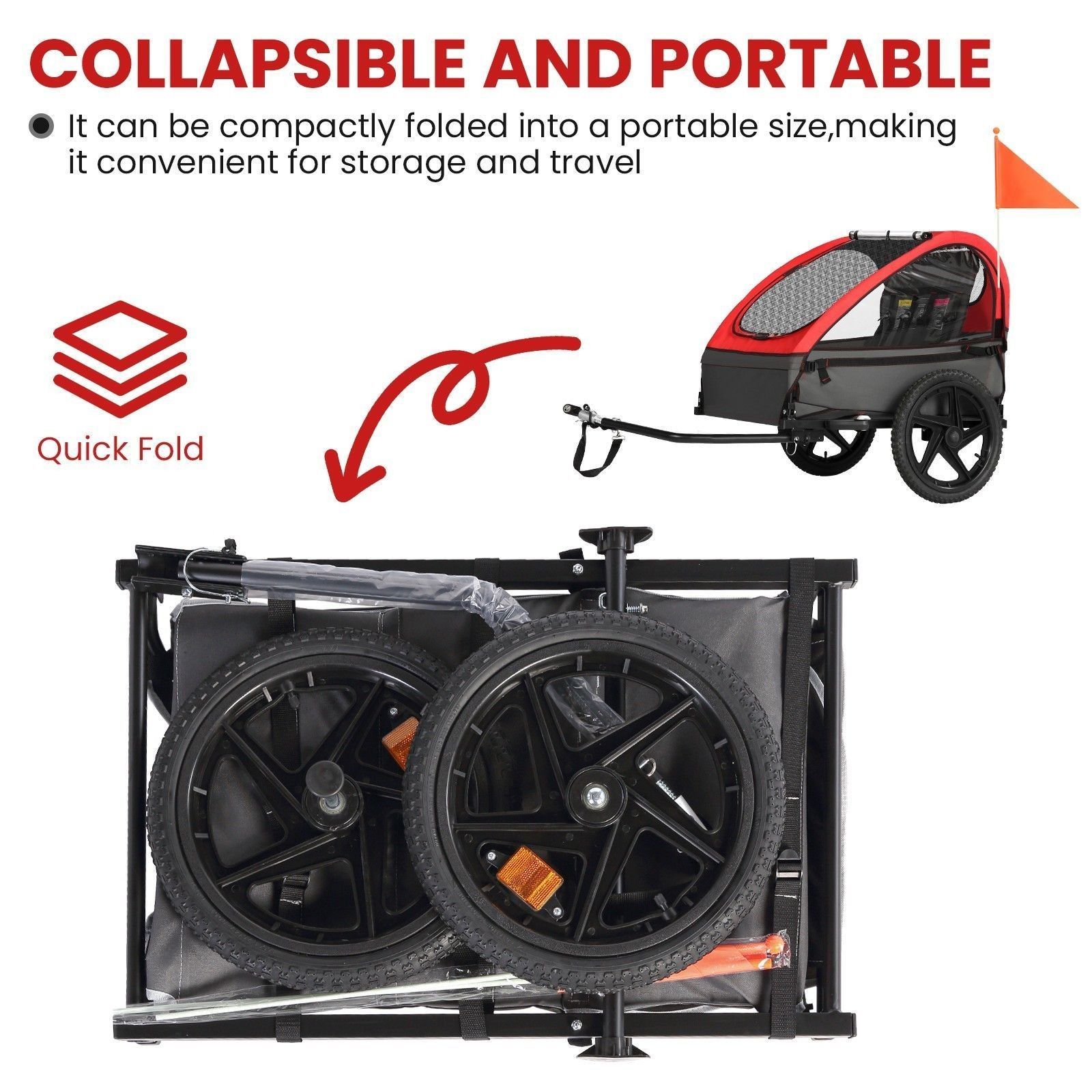 Faltbarer Fahrradanhänger mit 5-Punkt-Gurt und Aufbewahrungstaschen für 1-2 Jahre