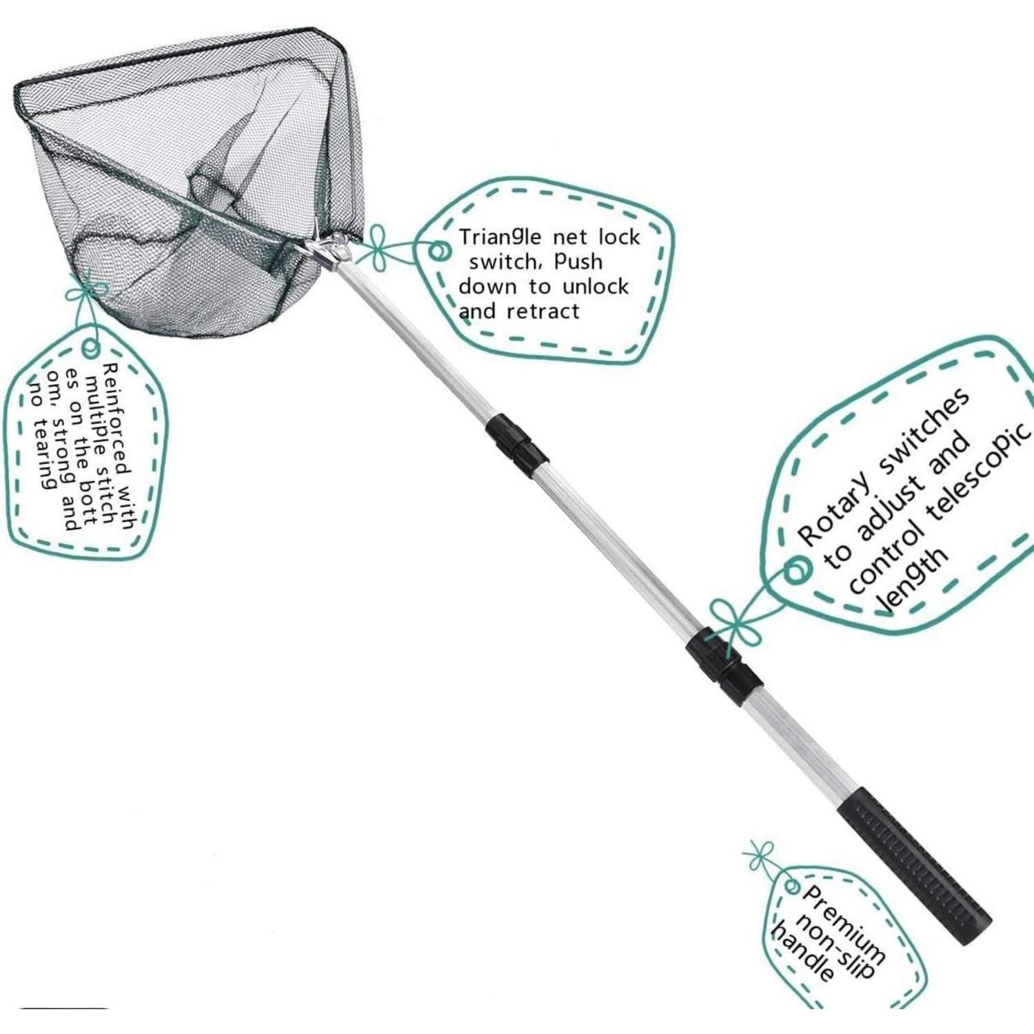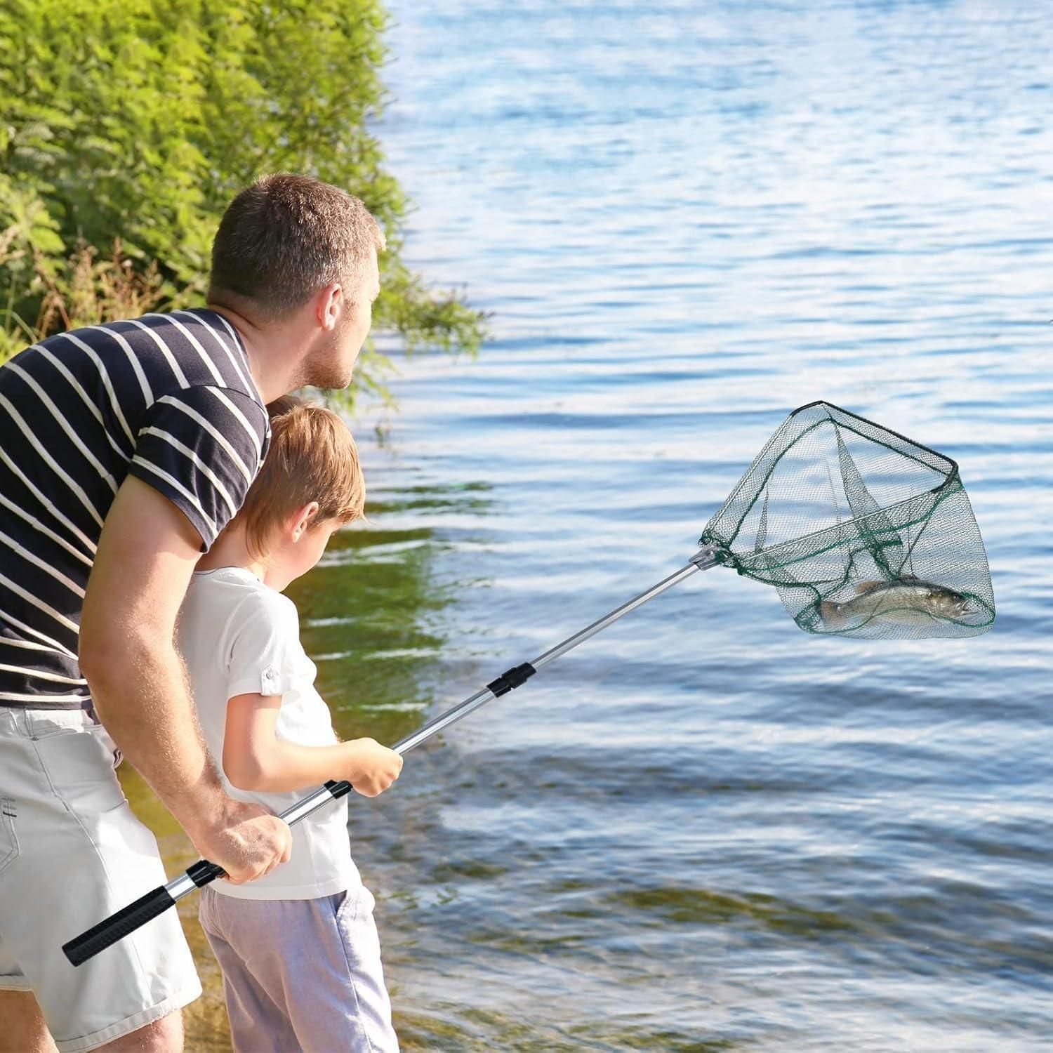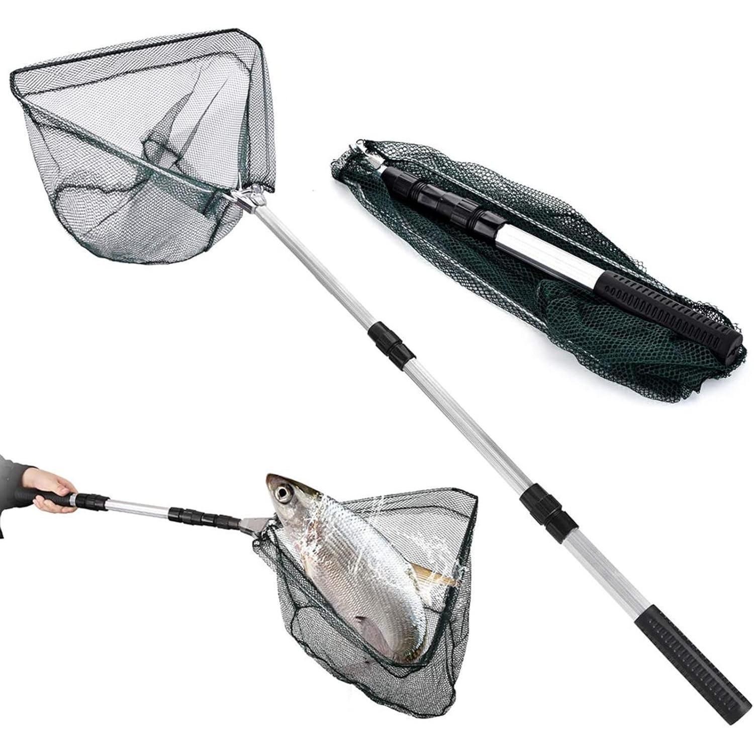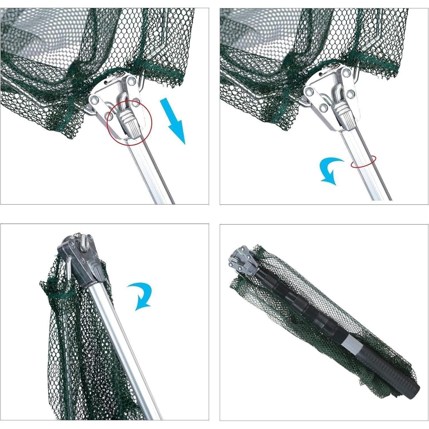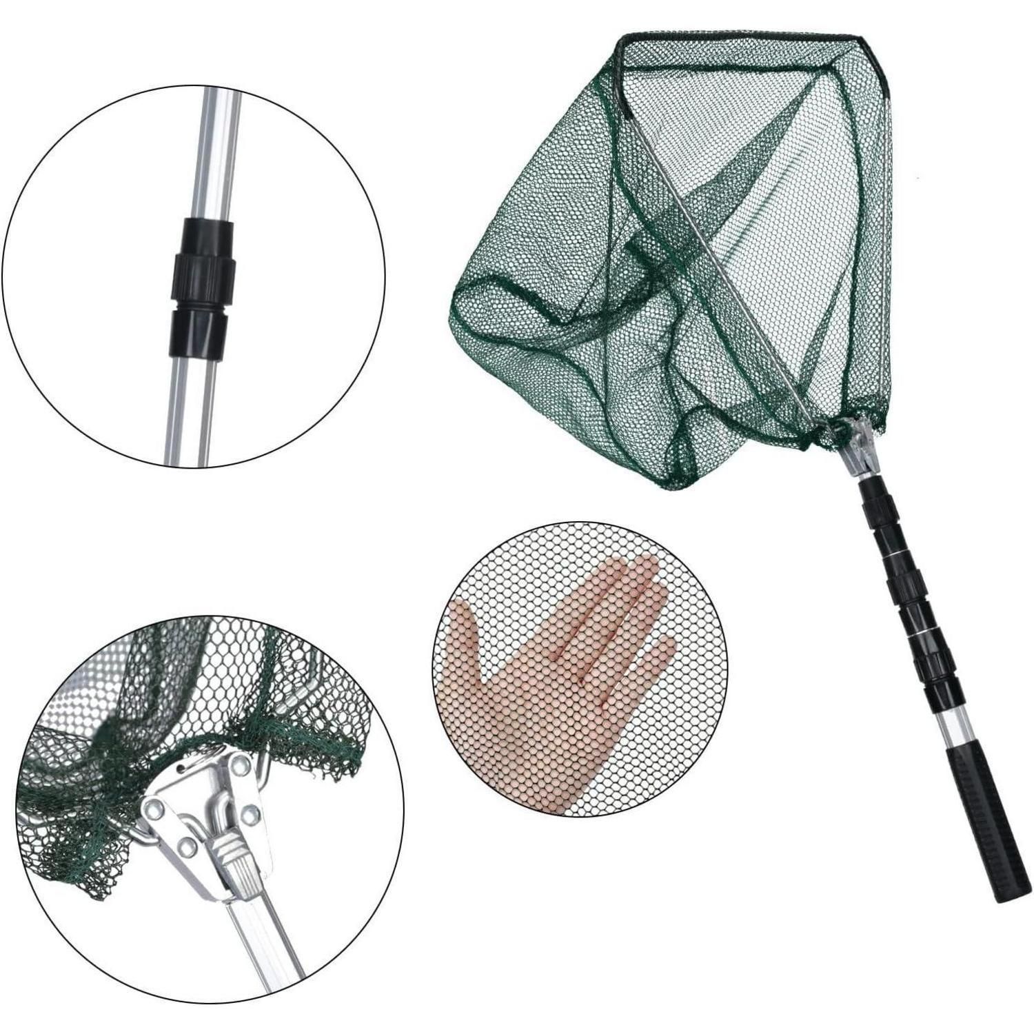 Faltbarer Kescher Angeln 120cm Teleskop-Stangengriff Ultraleicht Gummiertes Netz