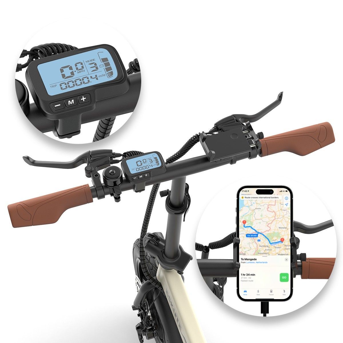 Faltbares Elektrofahrrad 14 Zoll E-bike mit Handyhalterung und verstellbarem Sattel