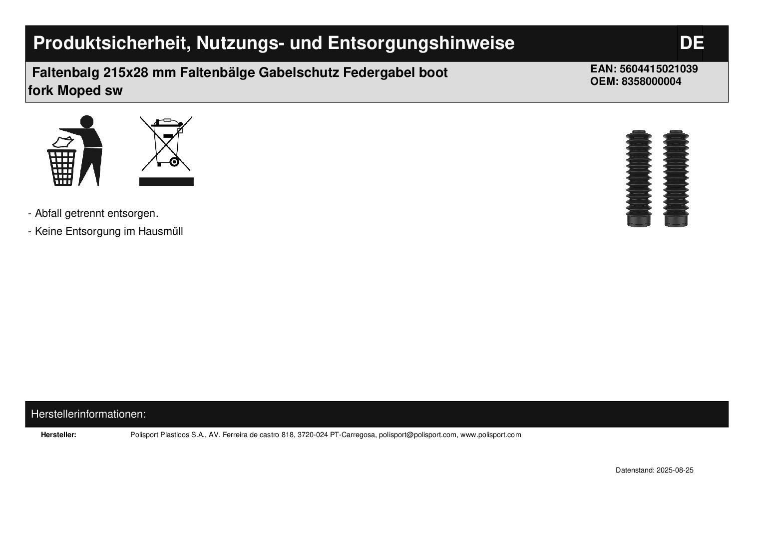 Polisport Faltenbalg 215x28 mm Faltenb?lge Gabelschutz Federgabel boot fork Moped sw