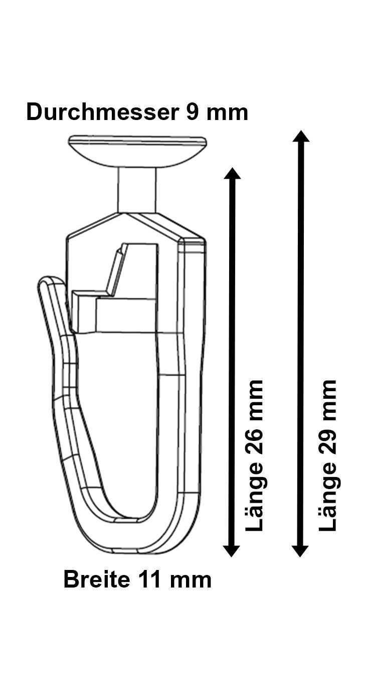 Faltengleiter/ Gardinenhaken m. 9mm Kopf für Gardinenschienen verschließbar