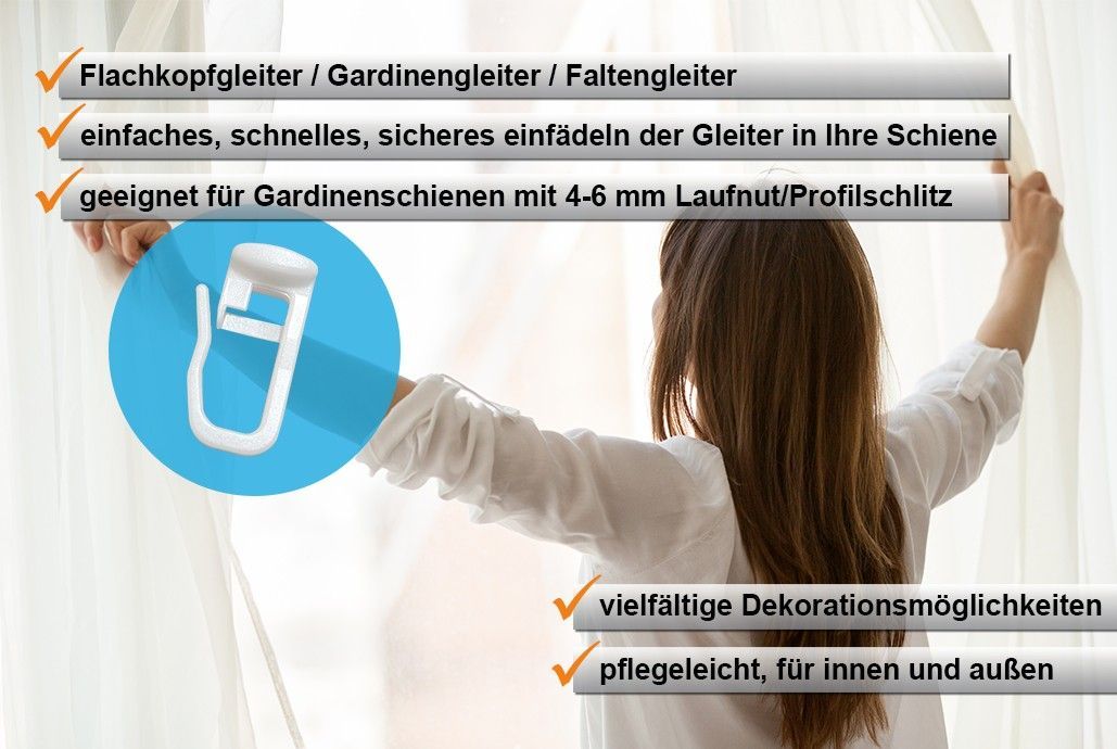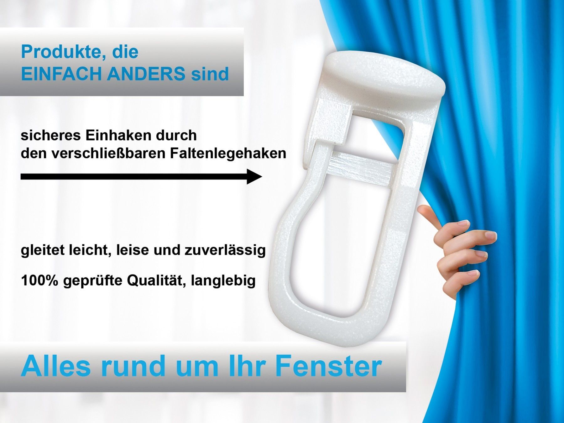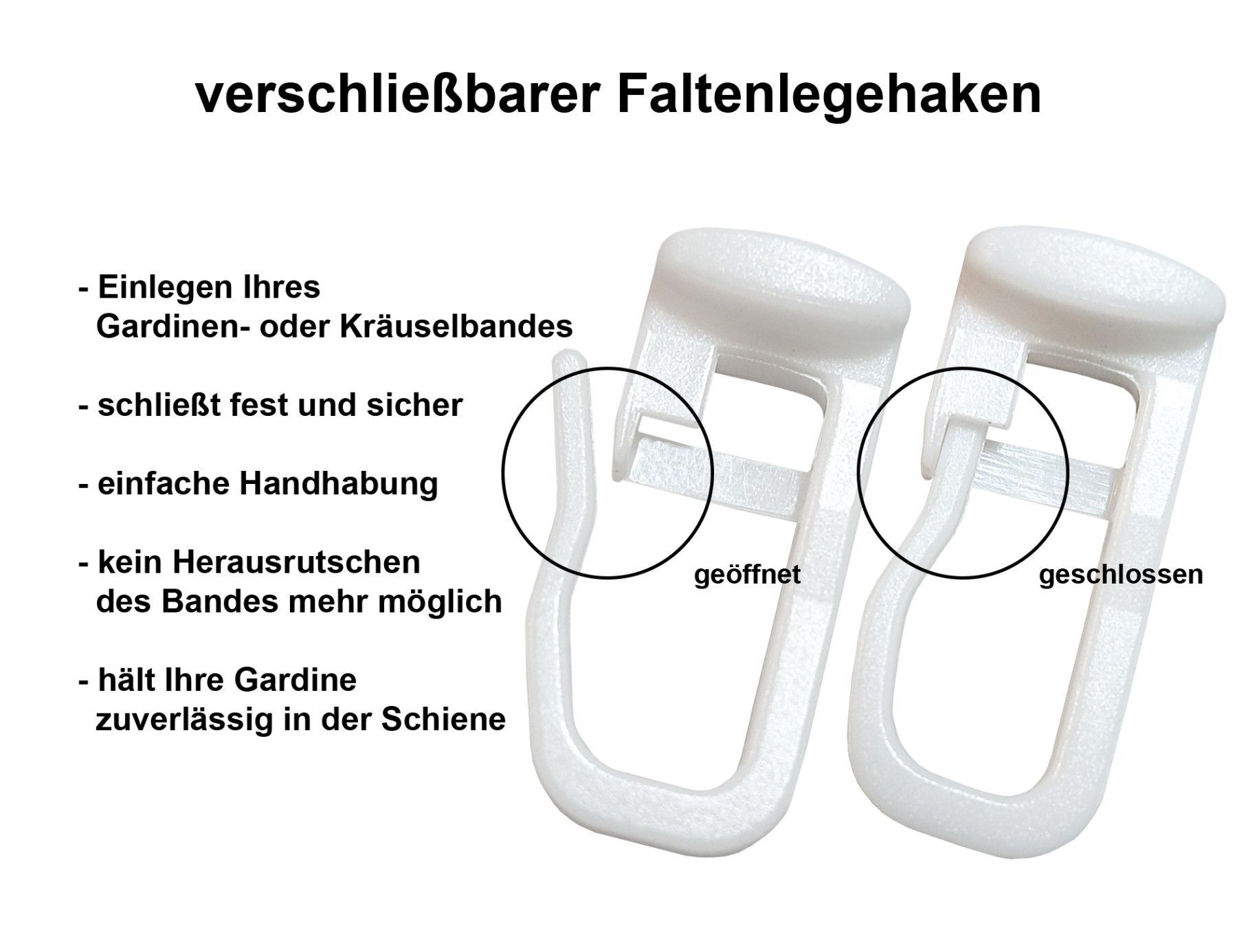 • 100 X- Faltengleiter mit Faltenlegehaken für Gardinenschienen, Gardinengleiter