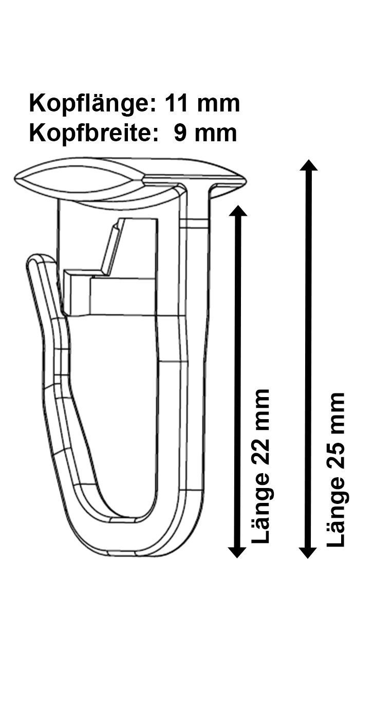 • 100 Faltengleiter - Gardinengleiter - Faltenhalter - Gardinenhaken mit 7mm Kopf