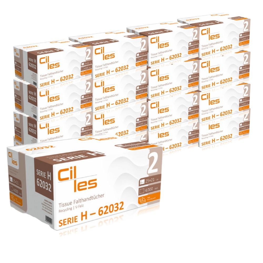 Falthandtücher 25x21cm, 2-lg, 32 Pak, 128.000 Blatt gesamt, 4.000 Blatt/ Pak, Recycli