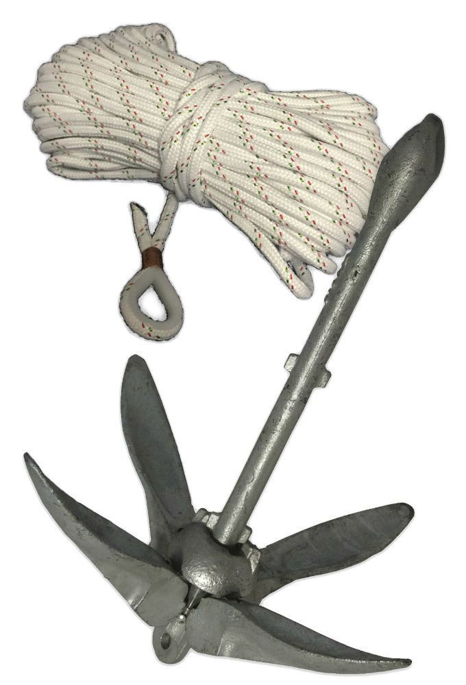 Faltklappanker Set + 30m Ankerleine geflochten Ankerset Anker Klappanker