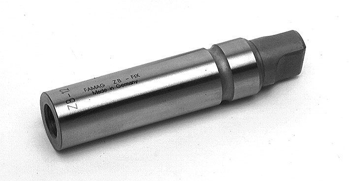 Adapter, außen MK 2 bzw. mafell-ZB (innen zylindrisch) mit je 2 Klemmschrauben. Bohrungstiefe 60 mm. Bei Kombi-Fix innen MK, außen zylindrisch mit Sechskant