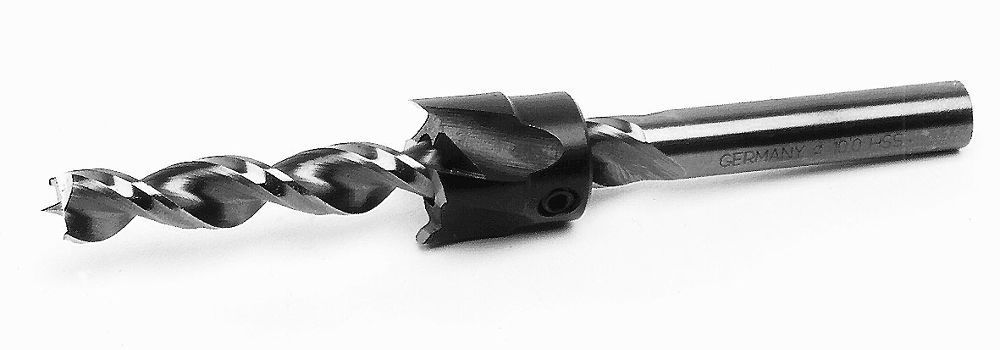 Aufsteckversenker für gerade Versenkungen (180°) mit 2 Hauptschneiden u. 2 Vorschneidern zum Aufstecken auf Holzspiralbohrer