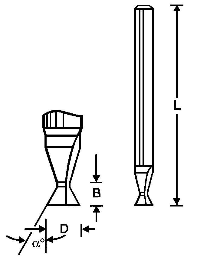Werkzeug: Zweischneidig, aus dem Vollen geschliffen, stirn- u. umfangschneidend