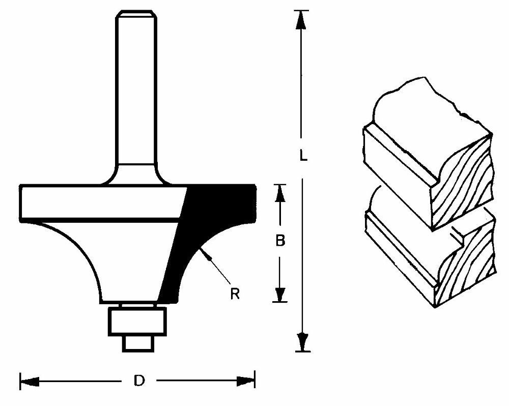 Werkzeug: Zwei HM-bestückte Schneiden mit Innenradius in umfangschneidender Ausführung. Positiver Schneidenwinkel. Mit auswechselbarem Anlauflager (Ø 9,5 mm) stirnseitig