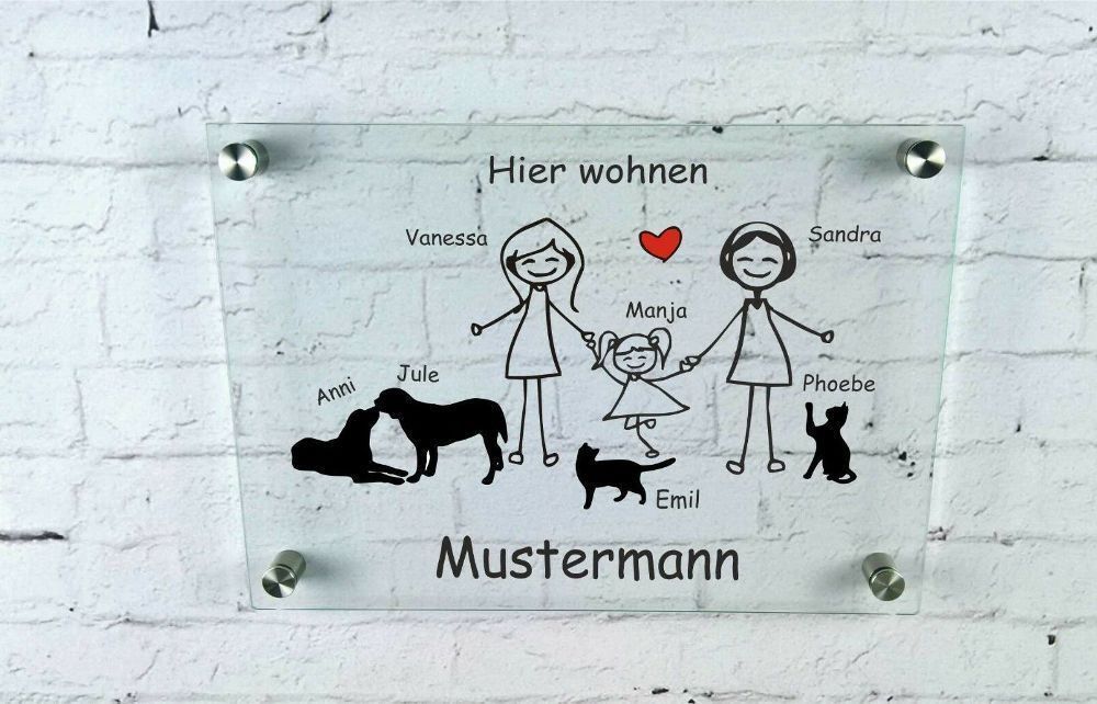 Familie mit Hund, individuelles Namensschild, Türschild, Glas oder Acryl A4