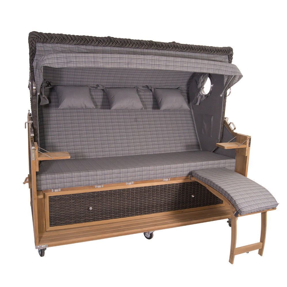 familien Strandkorb Kampen Spezial 4-Sitzer Mocca Duo PE Polyrattan Volllieger