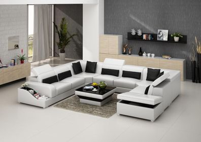 Ecksofa Leder Sofa Polster Eck Sitz Wohnlandschaft Garnitur UForm Familien Couch