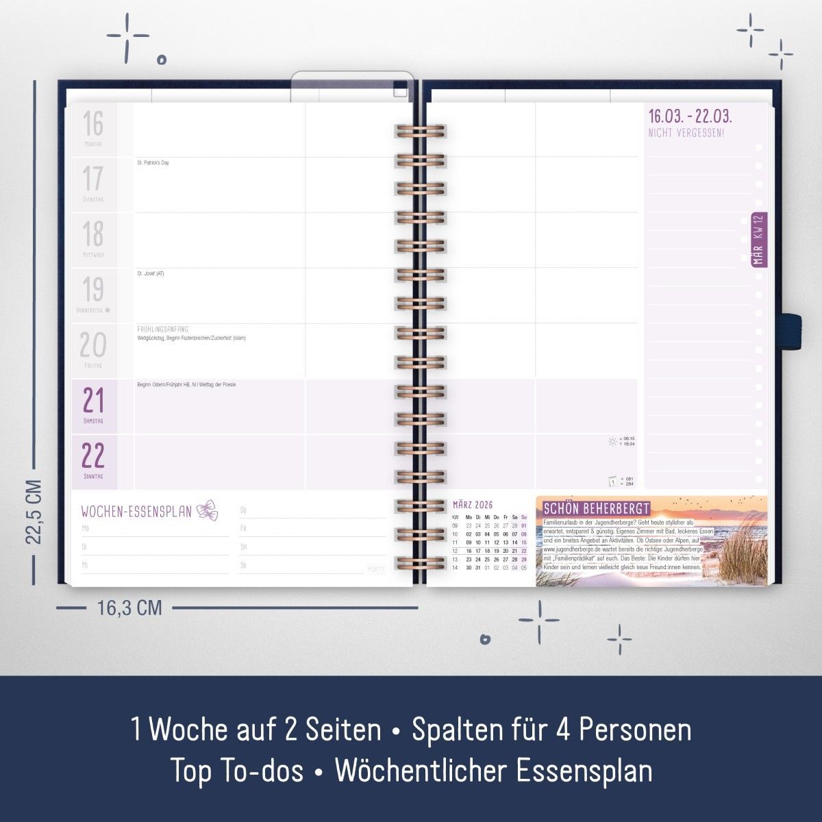 Familienplaner Kalender 2025 2026 - Der Family-Timer für die optimale Planung des Familienalltags mit einer Laufzeit von 18 Monaten - nachhaltig & klimafreundlich. Familienkalender 2025 2026 Laufzeit: Juli 2025 – Dezember 2026 Format: Umschlag A5+ (16,3 x 22,5 cm), Innenteil A5 (14,8 x 21 cm) Seiten
