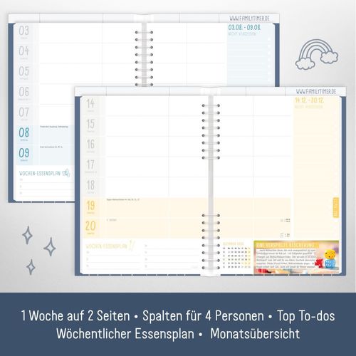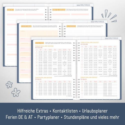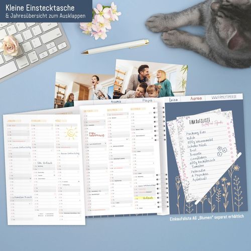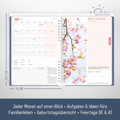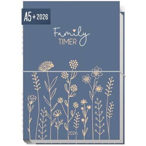 Family-Timer 2026 / A5+ / Fine Flowers Blue / Häfft-Verlag