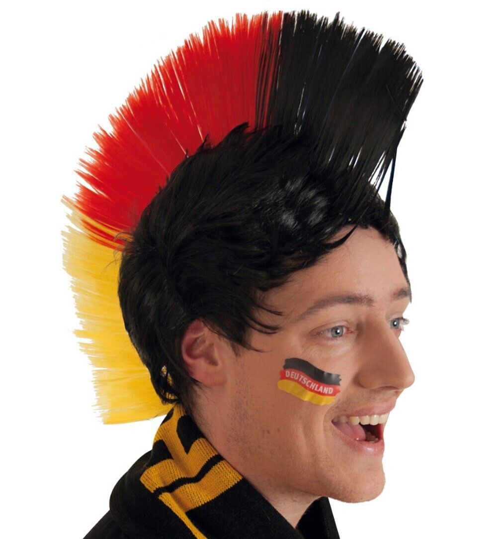 FAN Perücke "IROKESE FAN" Perücke in schwarz/rot/gold FAN-Artikel