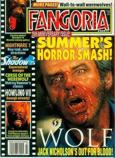 Fangoria 134 original full colour magazine from Starlog Group Inc. USA 1994 (1st printing), TEXT IS COMPLETELY IN ENGLISH !!, excellent film & TV magazine covering mostly sci-fi fantasy horror mystery etc. with tons of pics on 92 pages (this issue: 15th anniversary issue with foil cover, Wolf, C